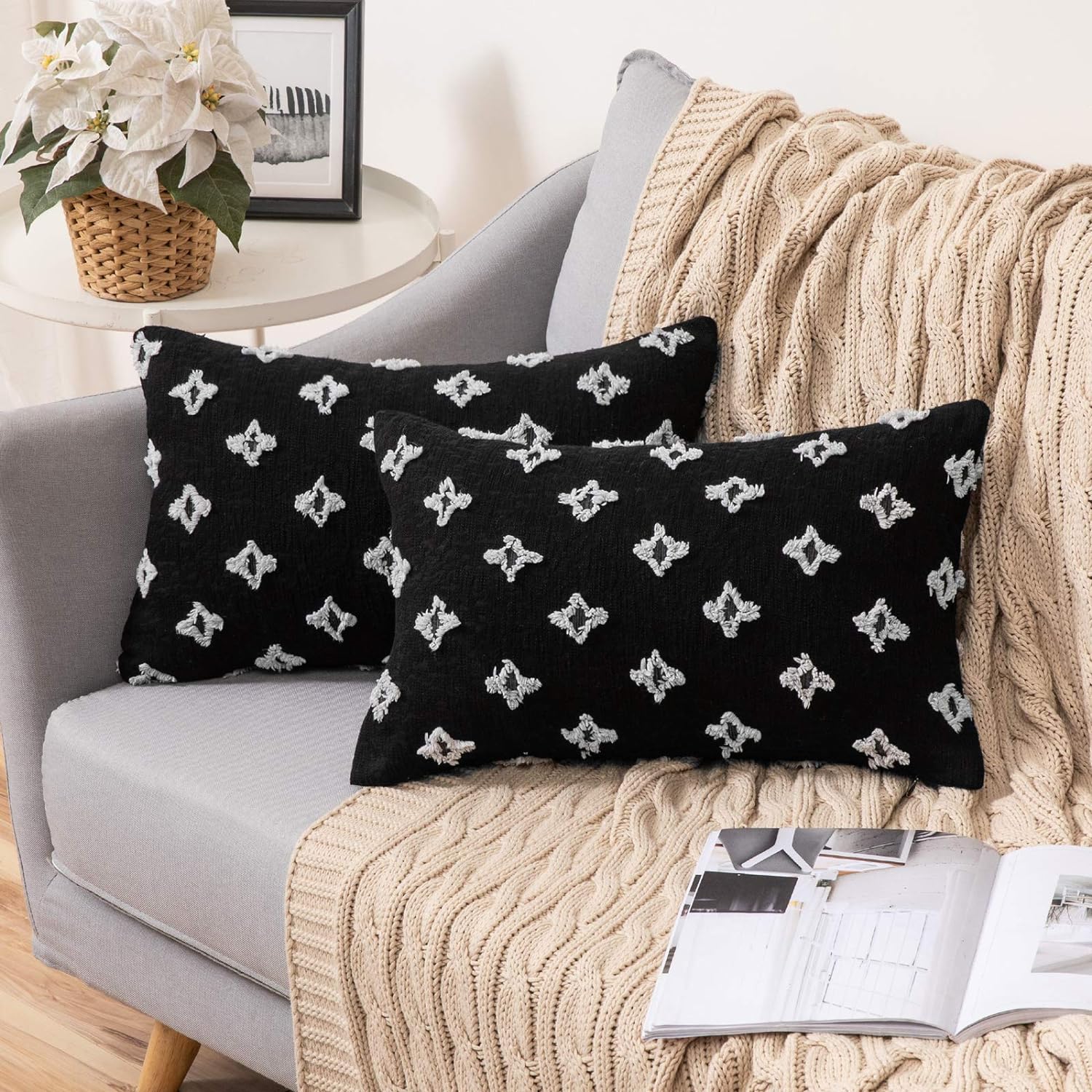 12''x20'' tufted floral lumbar support 100% cotton throw pillow | 7 colors textured daisy stitch design | boho chic lumbar & accent pillow | insert included