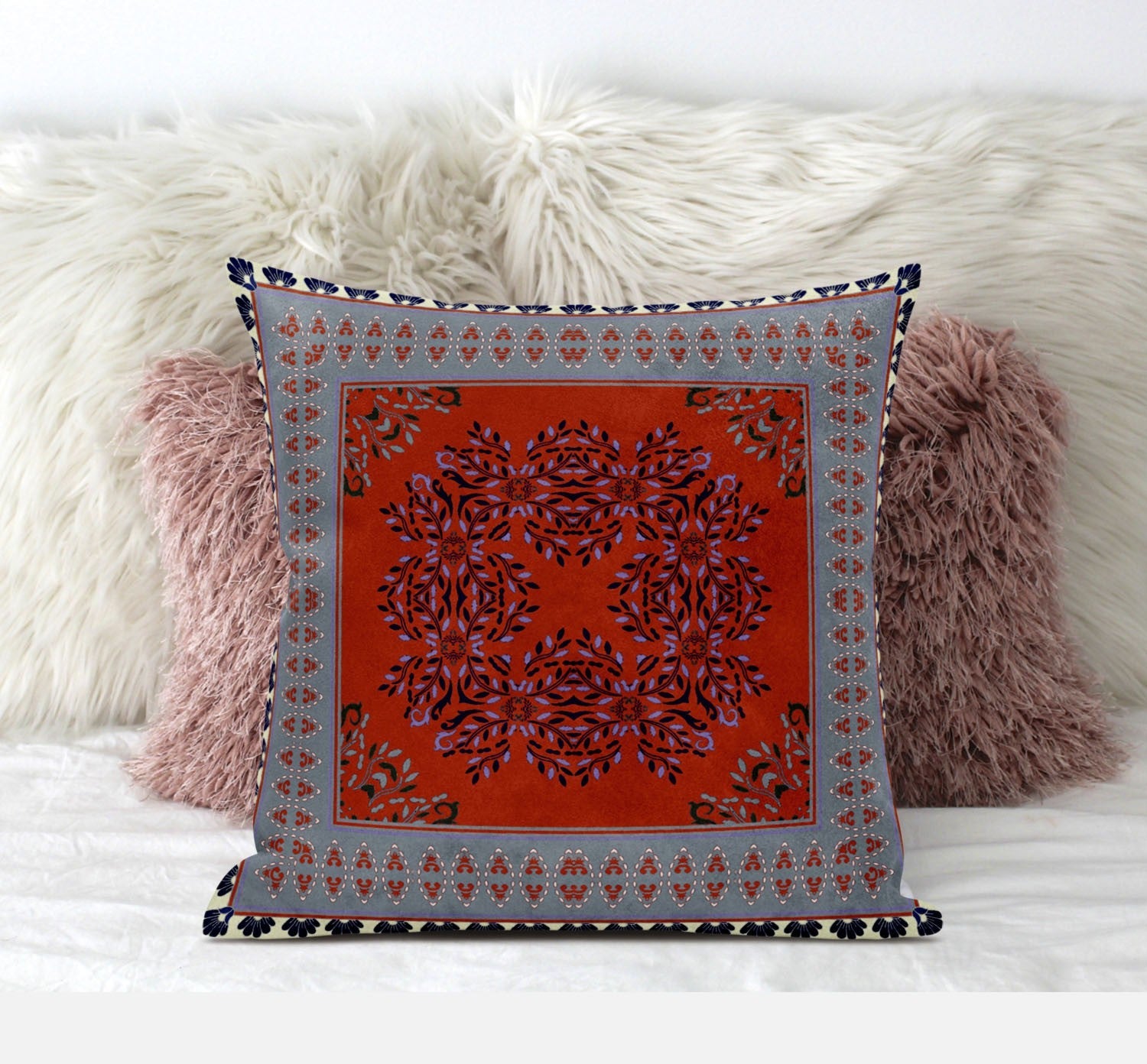 Bring a bit of fashion and zip to your space with this eye-catching and comfy 16" x 16" red and gray blown seam geometric indoor outdoor throw pillow. Durable red and gray suede has been used to give this pillow a beautiful look that will stand the test of time. A great decorative accessory to decorate indoors or out. Decorative throw pillows add some pizazz but can also be comfy and supportive when you are lounging. 5" H x 16" W x 16" D