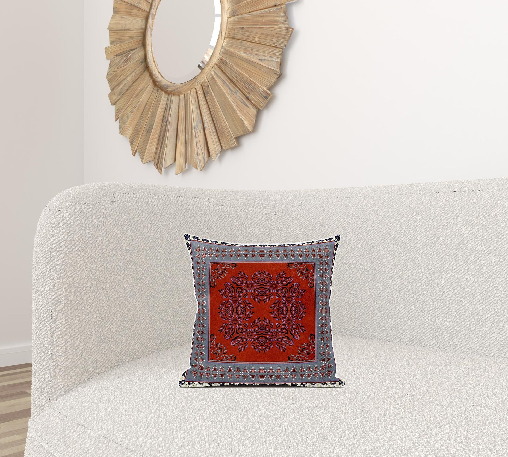 16" X 16" Red And Gray Blown Seam Geometric Indoor Outdoor Throw Pillow