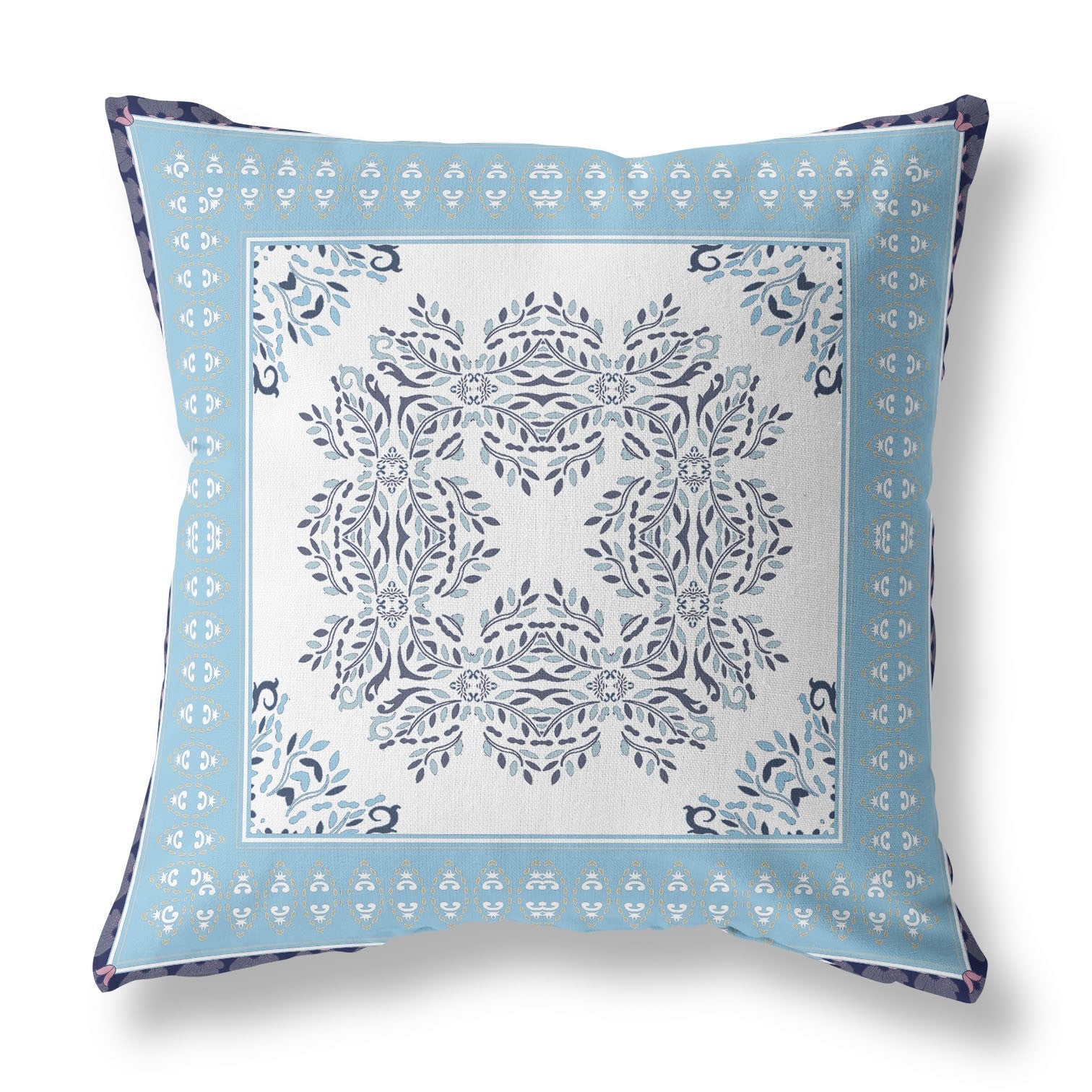 This 16" x 16" white and indigo blown seam floral indoor outdoor throw pillow will add a beautiful decorative accent to your decor. This white and indigo hued piece represents quality construction, expertly made from durable broadcloth that is not only long lasting but soft to the touch as well. Durable and easy to care for this pillow is designed to withstand the elements and still look great. A great decorative accessory for your favorite chair or to accent your sofa. 5" H x 16" W x 16" D