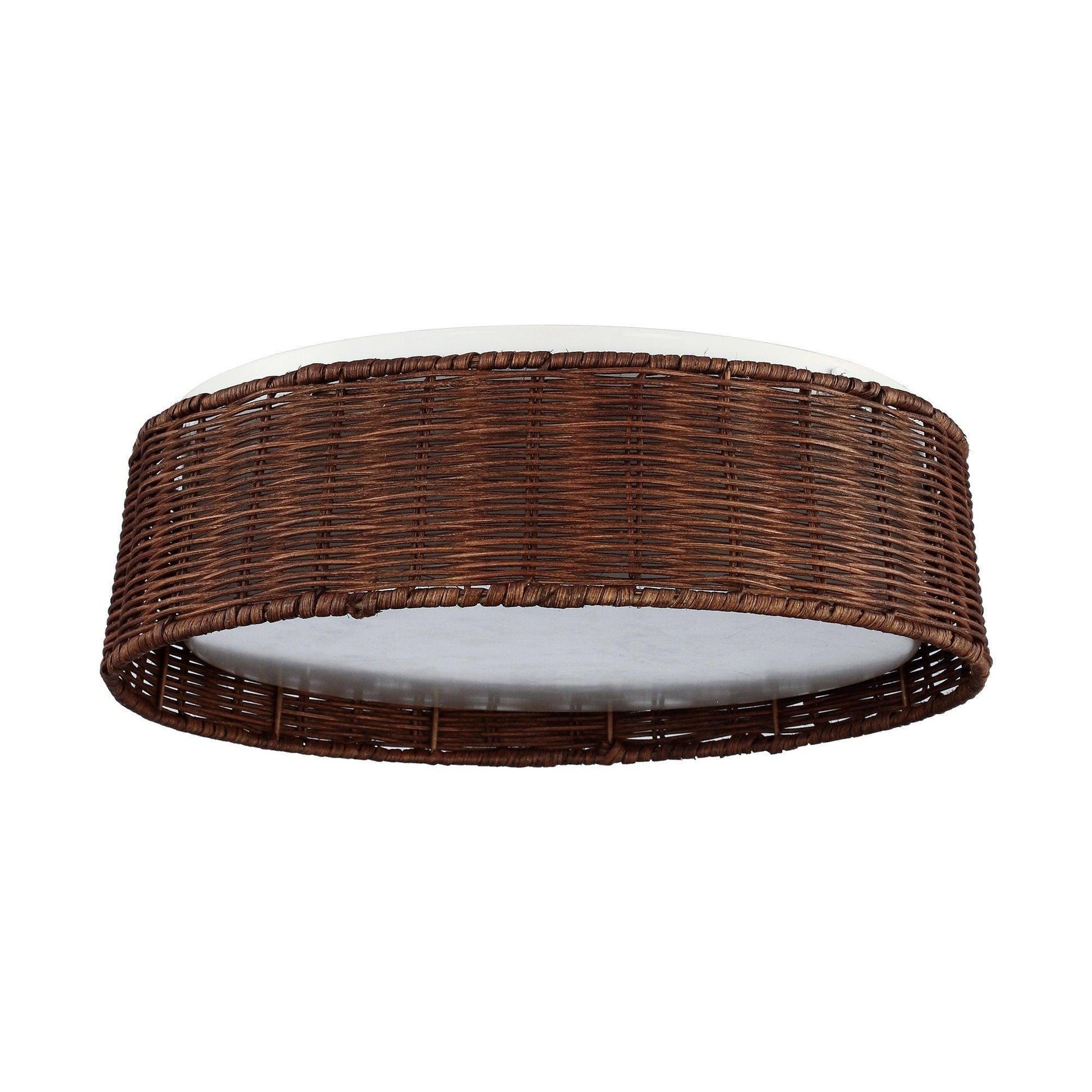 17" Traditional Brown Rattan Flush Mount Lighting with LED
