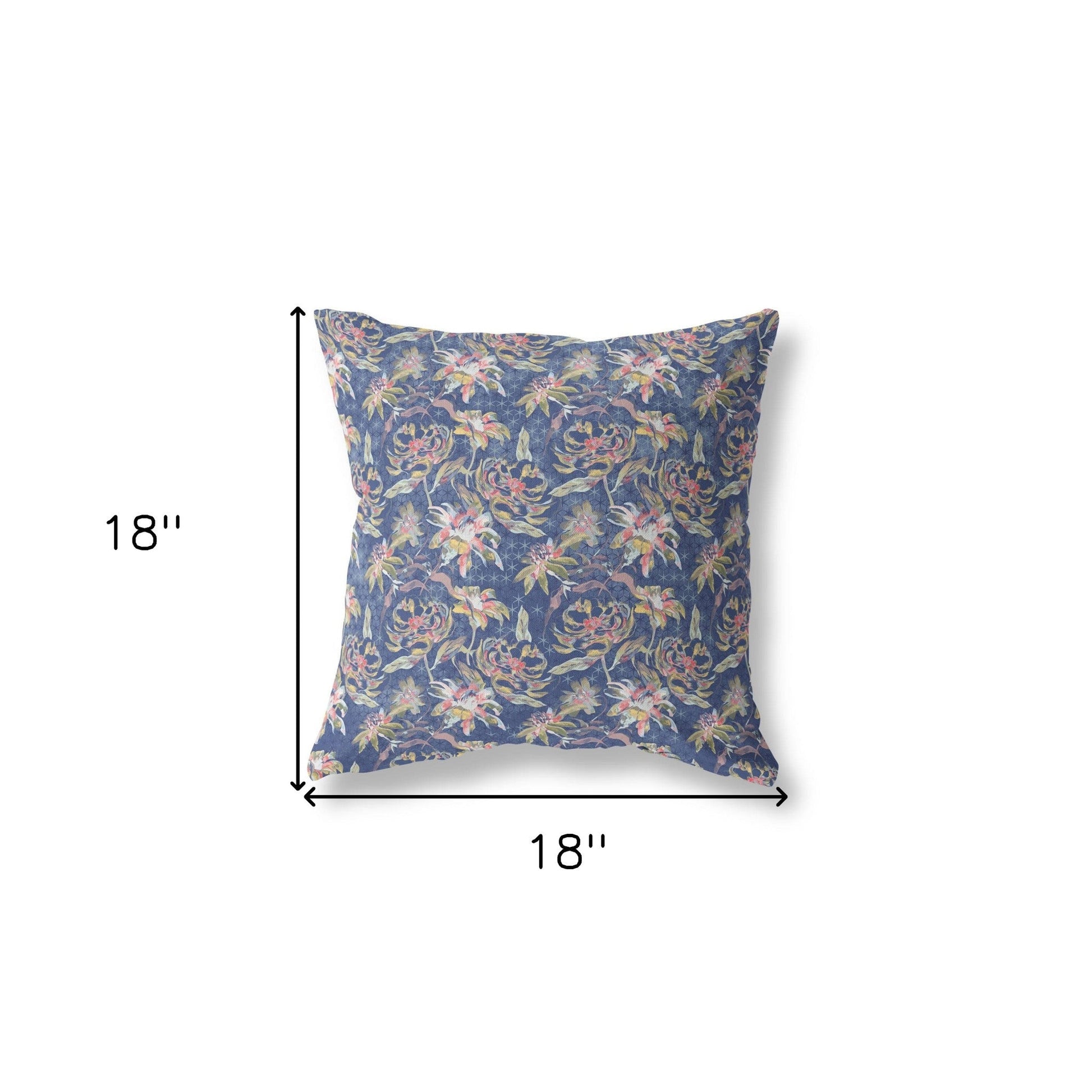 18” Blue Yellow Roses Indoor Outdoor Throw Pillow