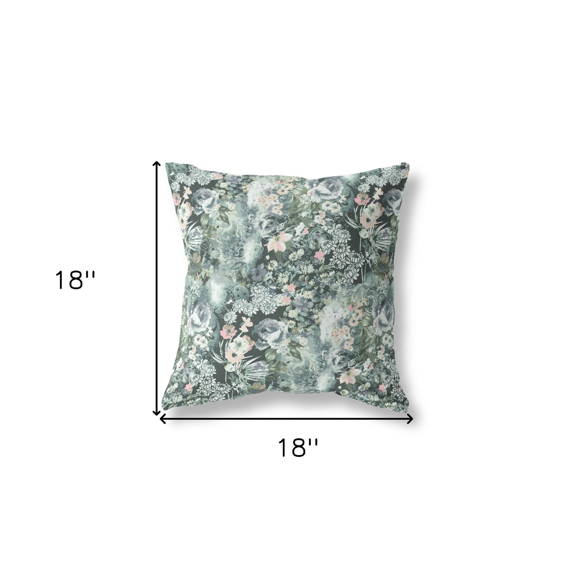18" Green Gray Springtime Indoor Outdoor Throw Pillow