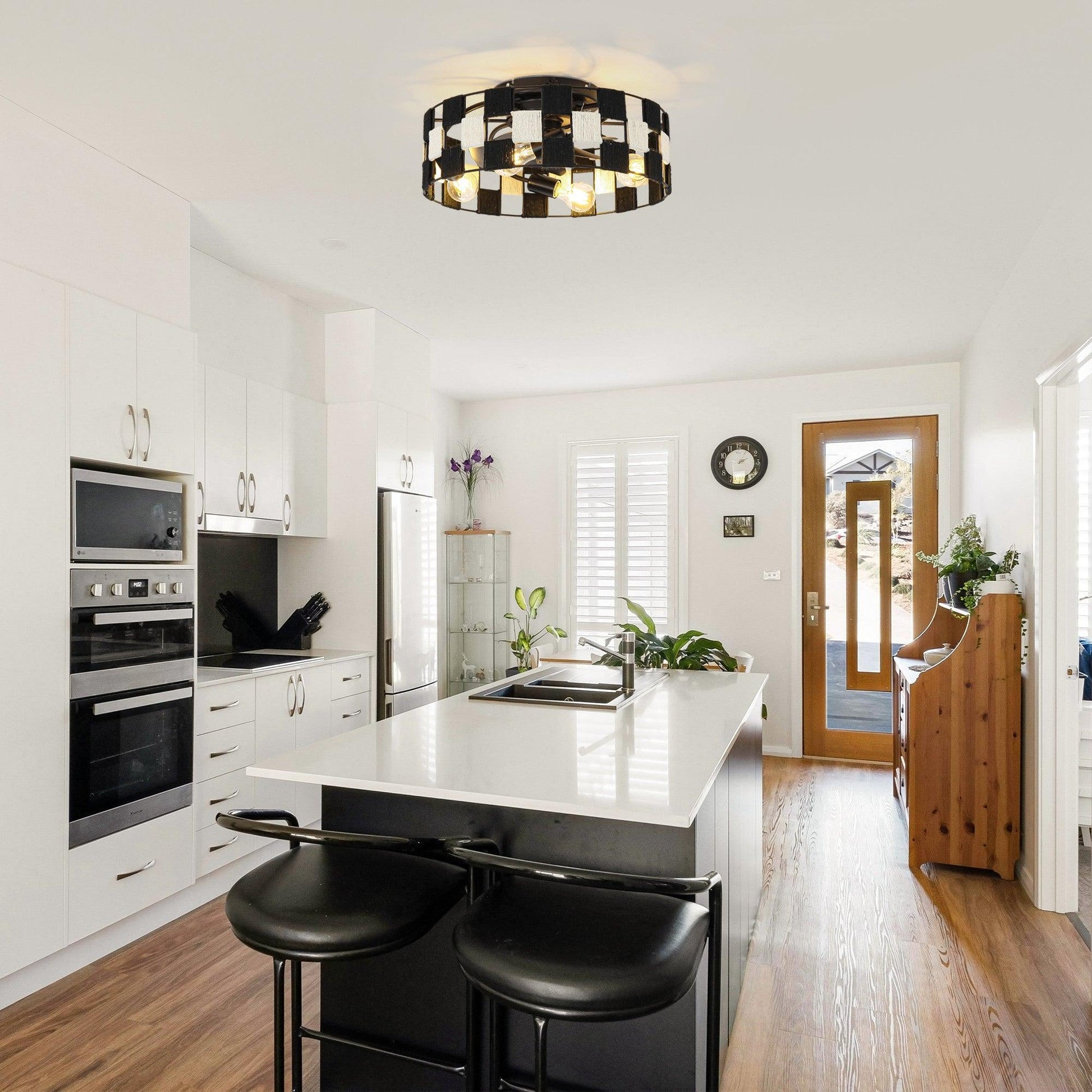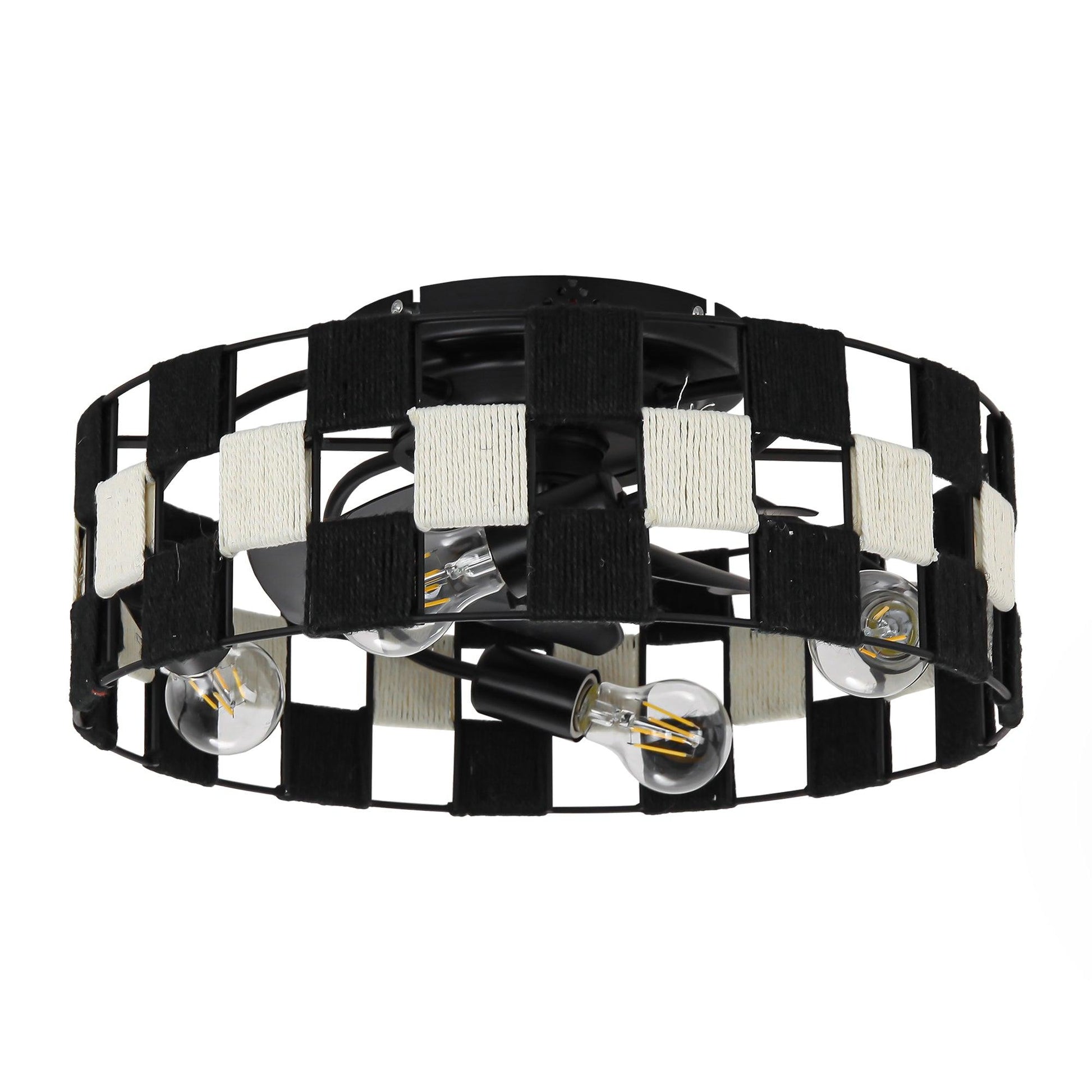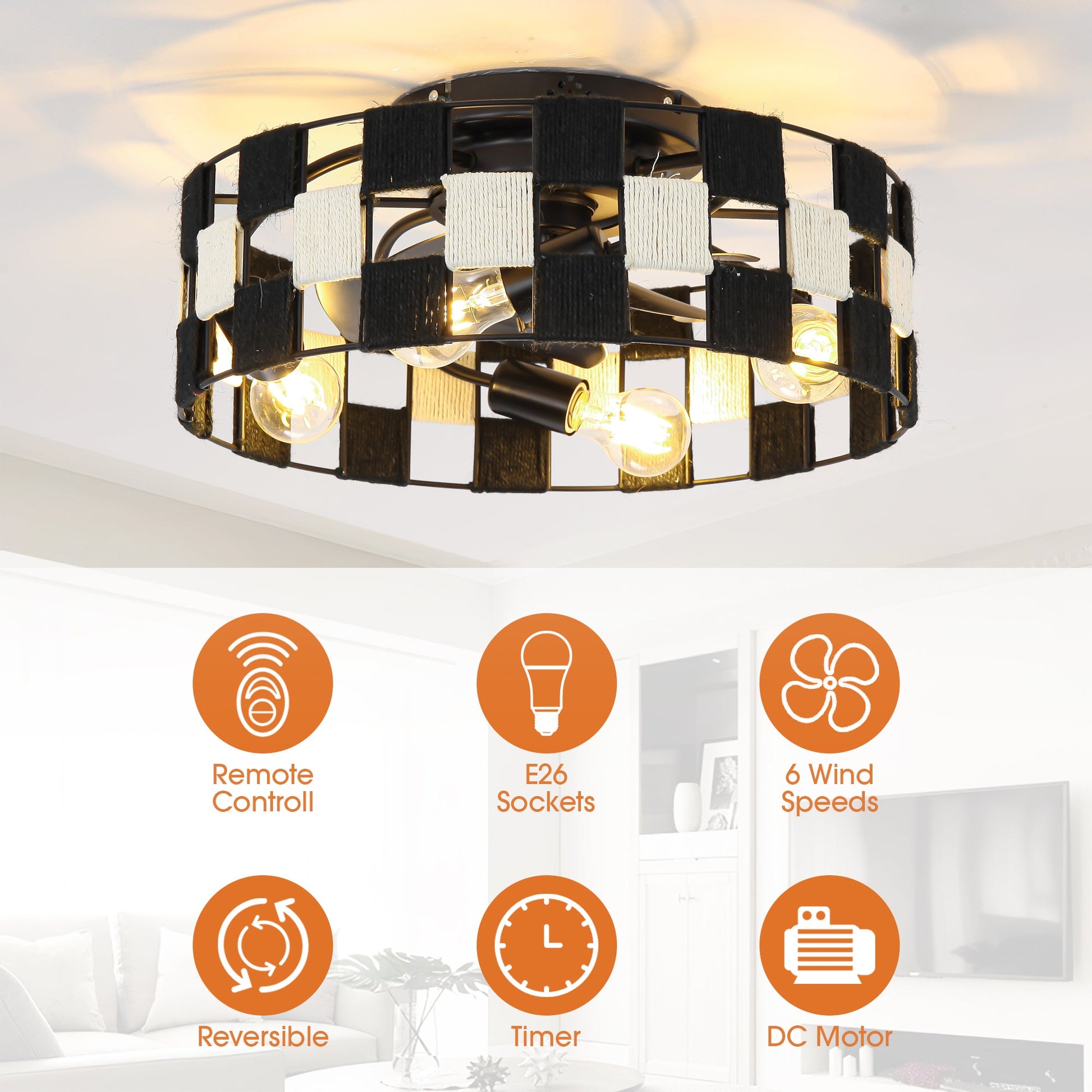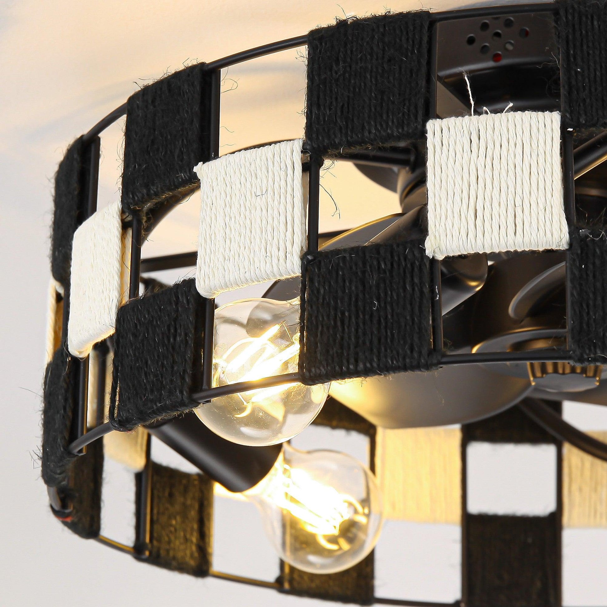 【Industrial aesthetic design】: The 18-inch black iron fan, with a lampshade decorated with black and white hemp rope, presents a tough industrial style, suitable for modern homes and loft spaces, and the top embedded installation saves floor height.