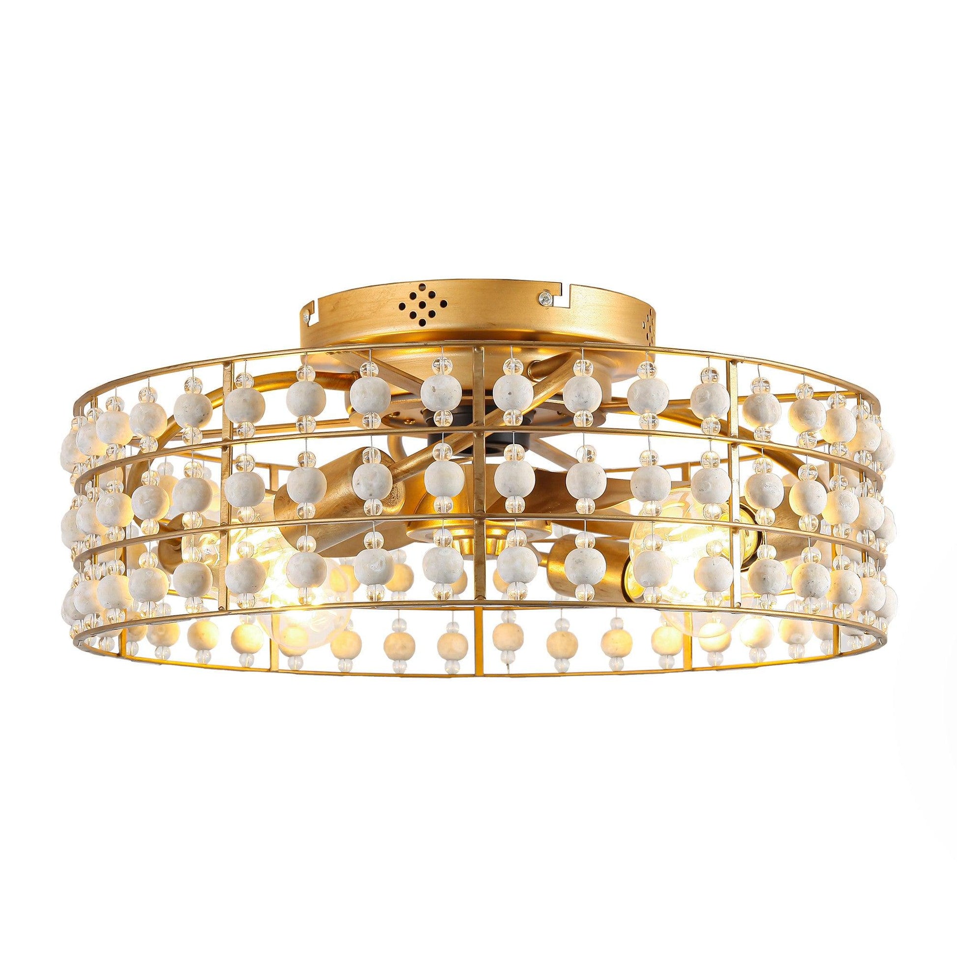 18 Inch Golden Farmhouse Wooden Beads Flush Mount Ceiling Fan with APP and Remote Control