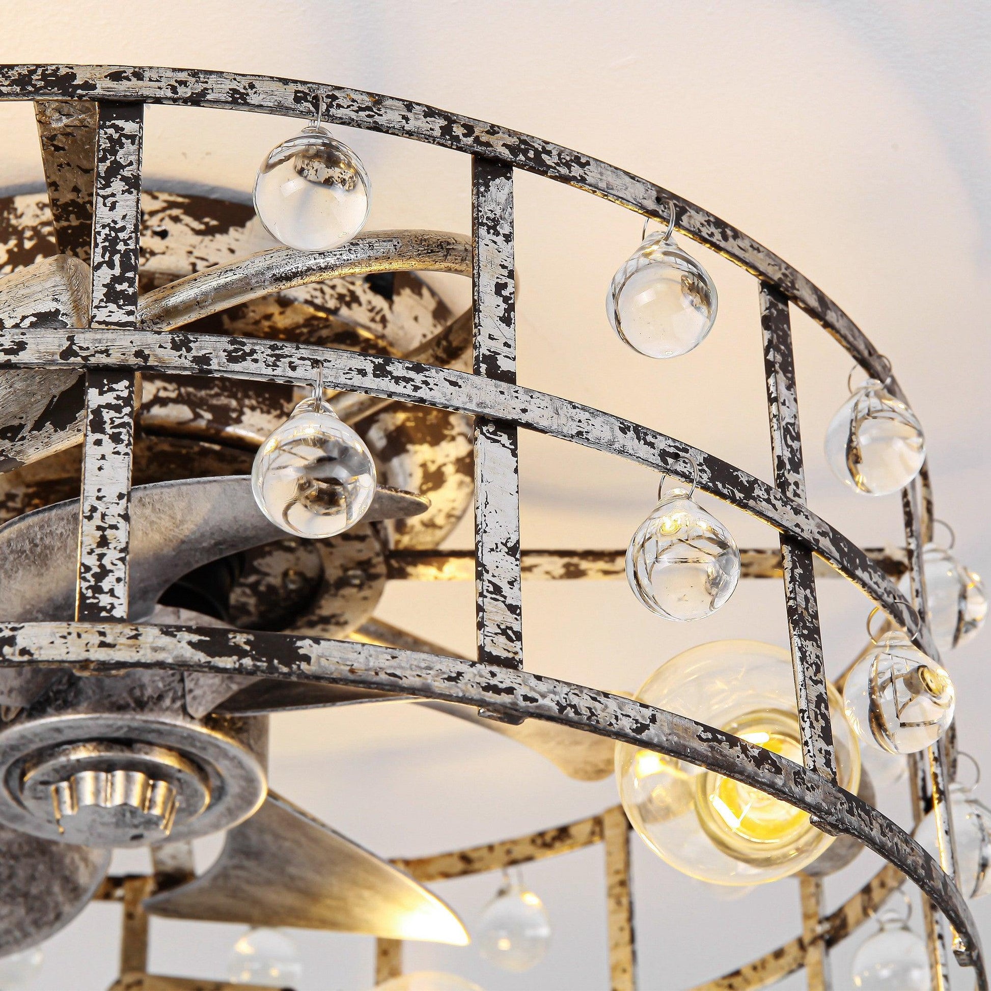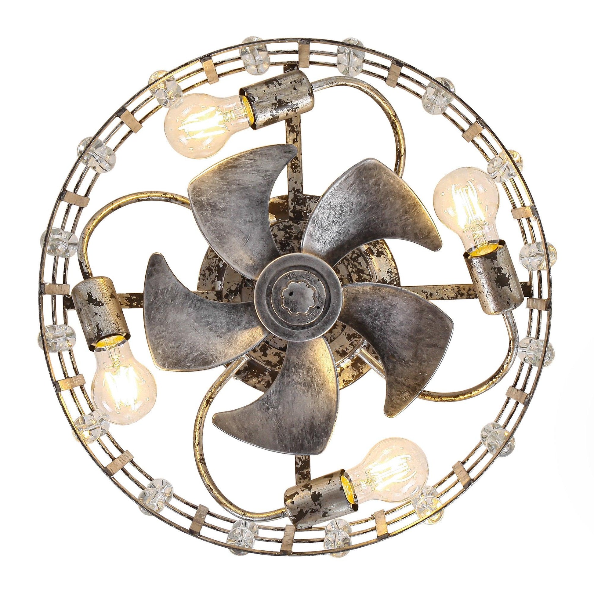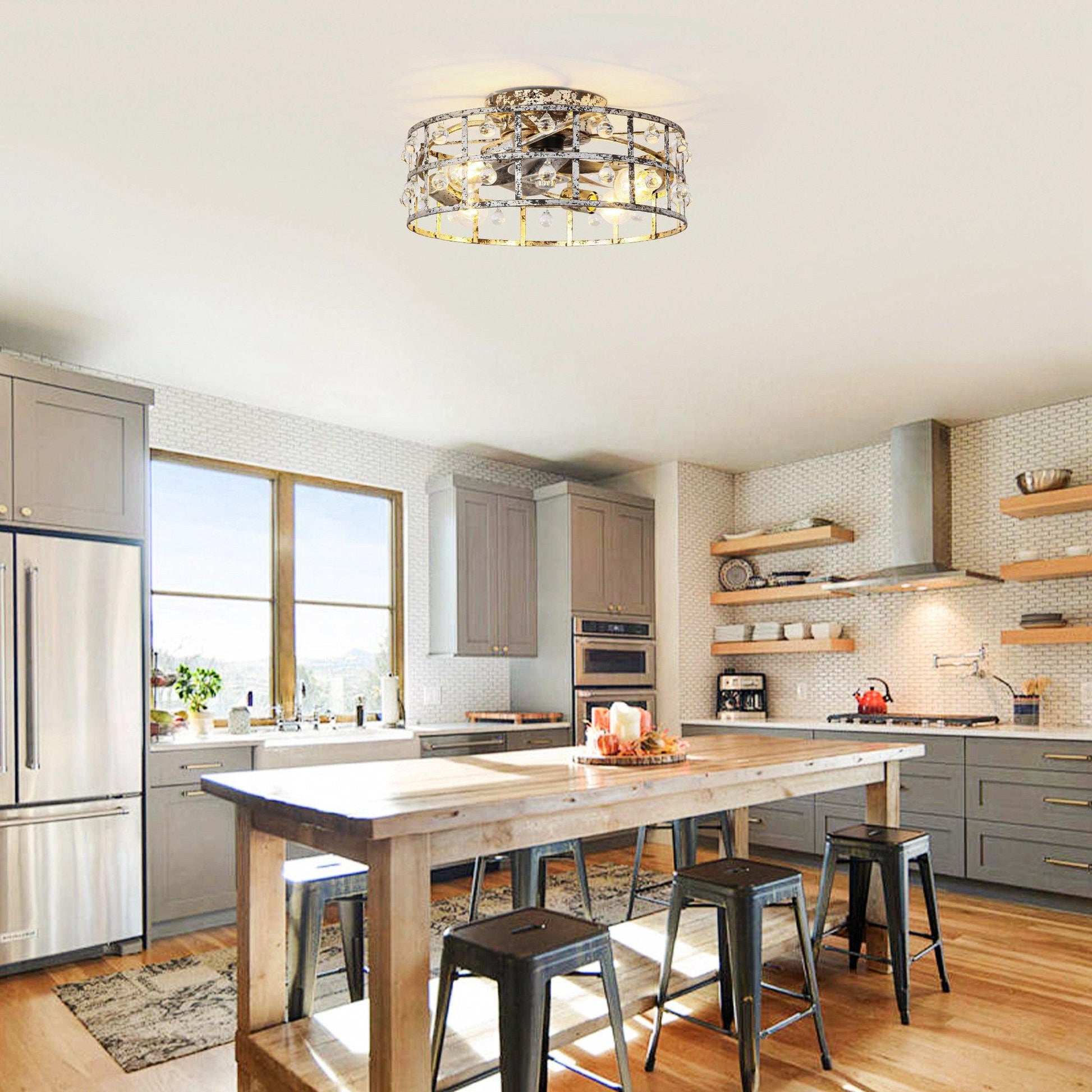 【Retro aesthetic design】: 18-inch farmhouse style embedded ceiling fan, retro silver metal body with crystal lighting, 5 45° angled plastic blades, combining industrial style with modern decorative sense.
