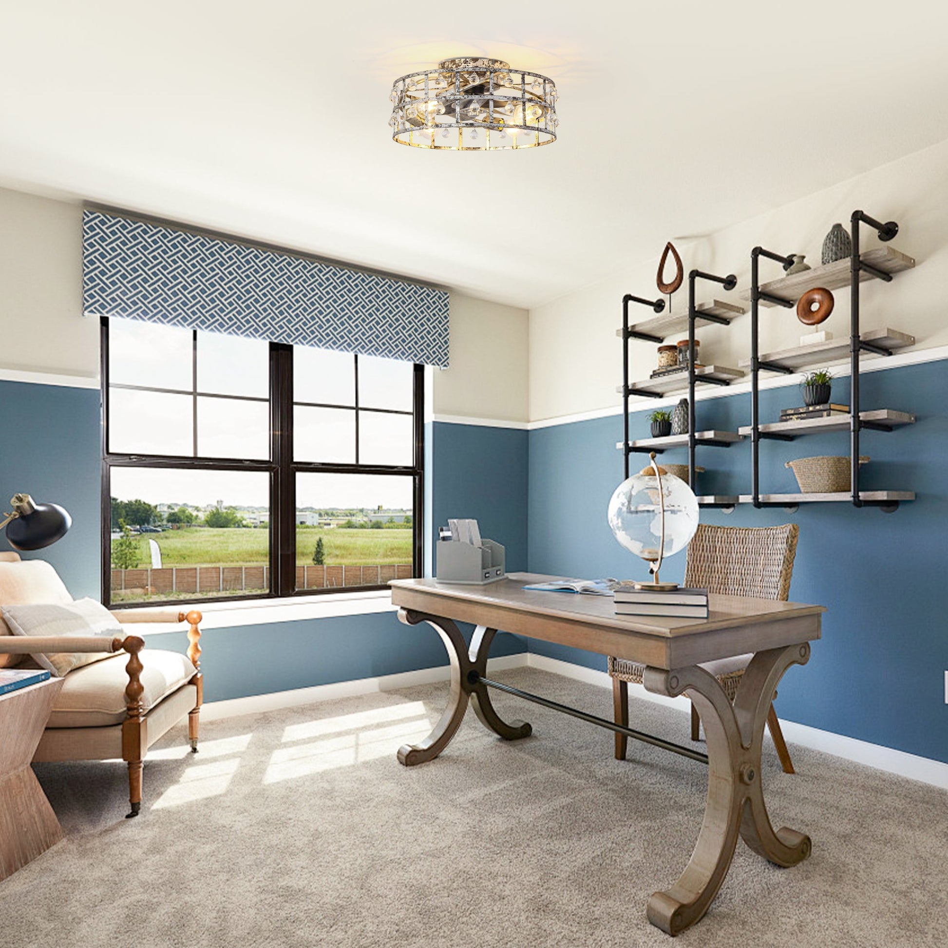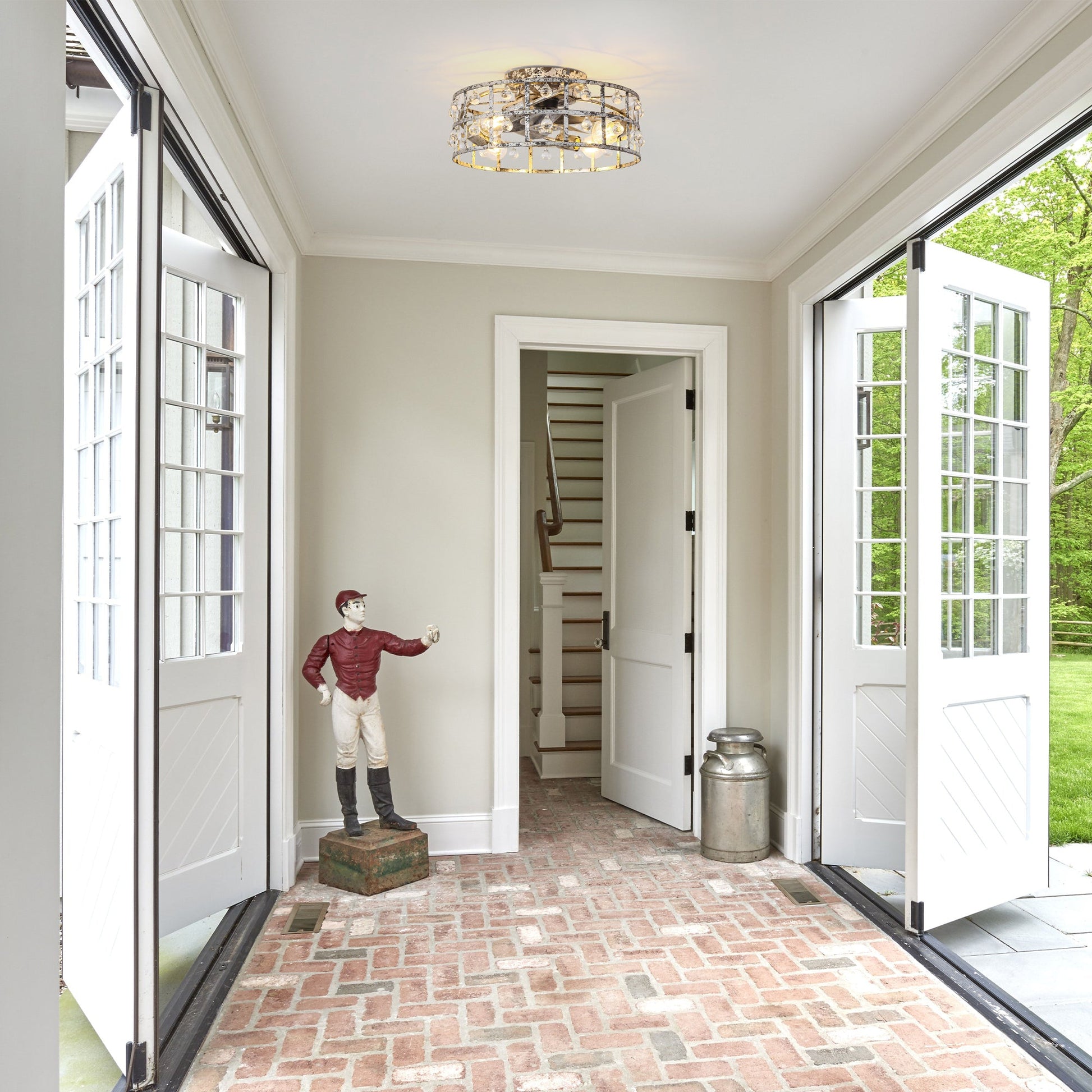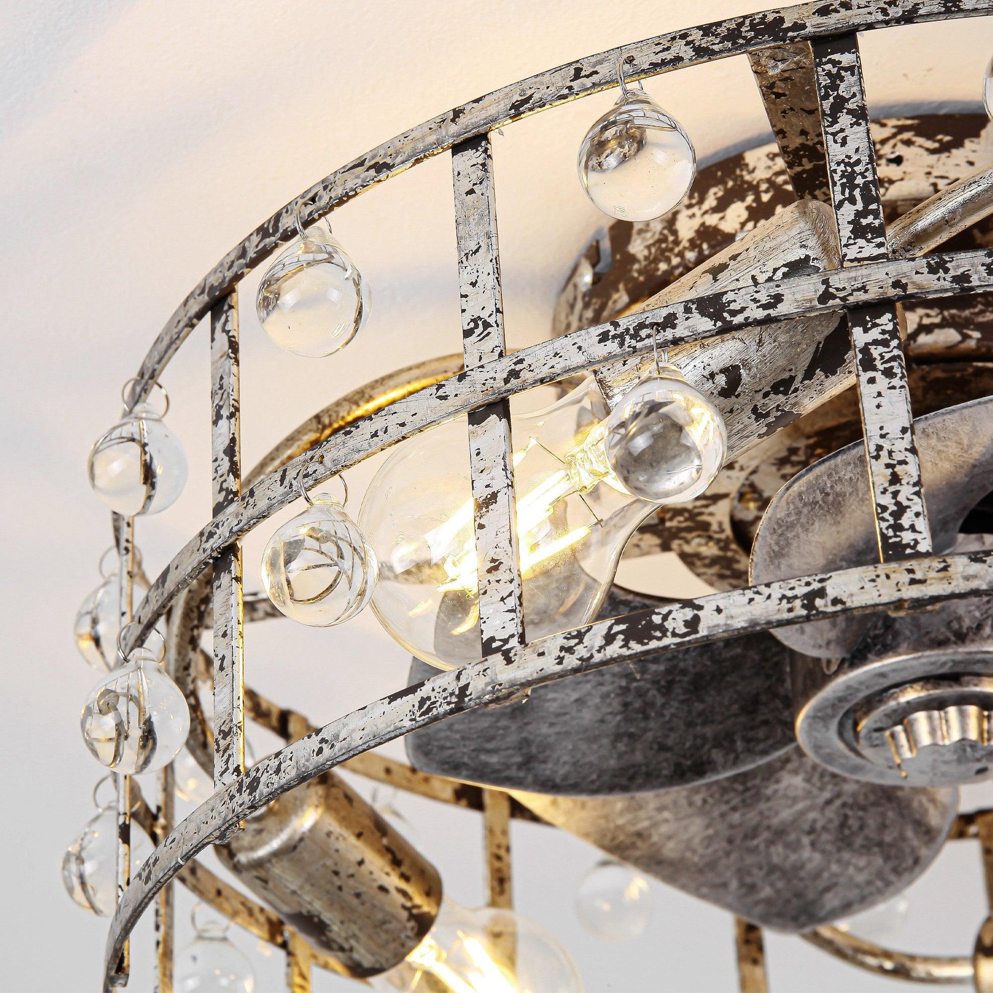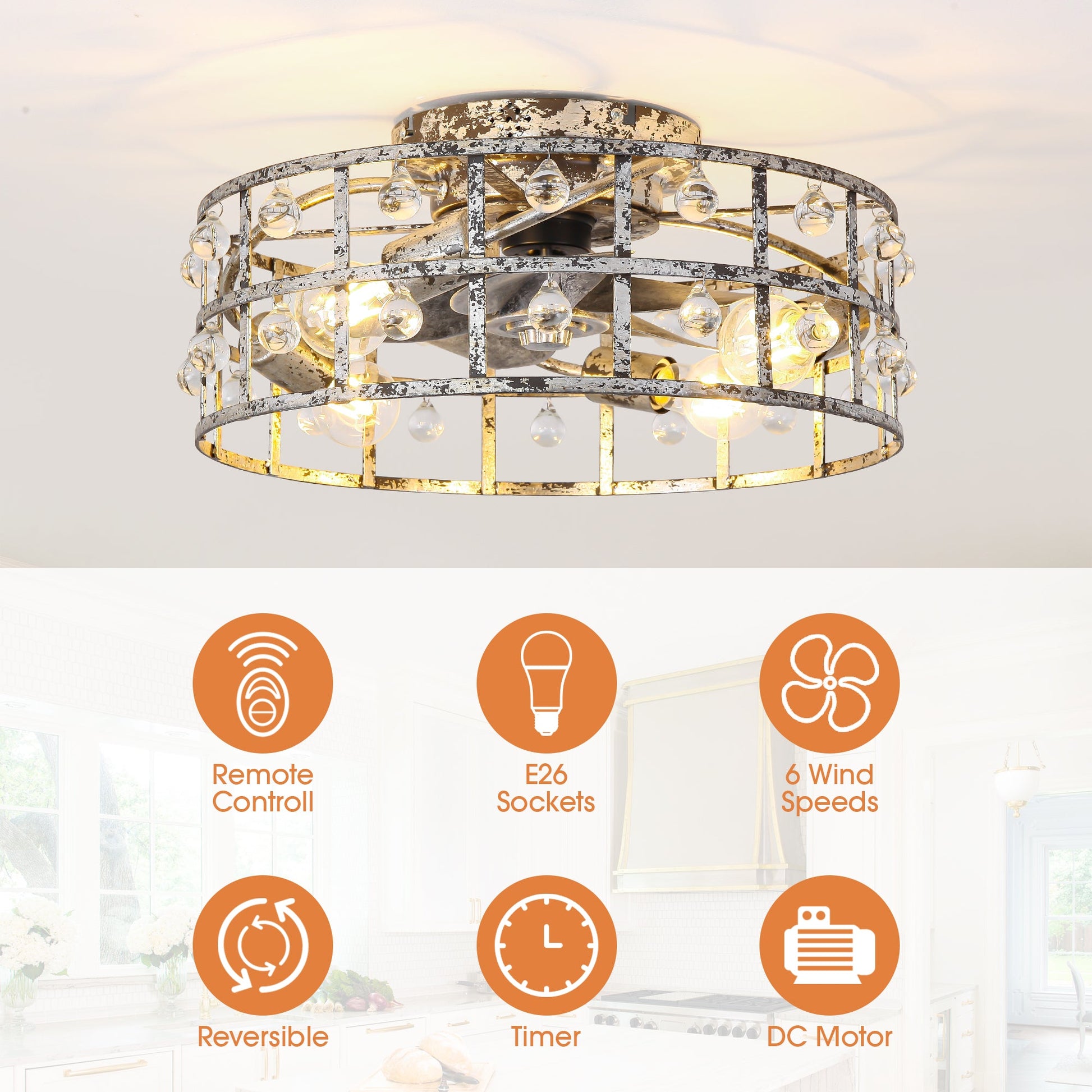 18 Inch Retro Silver Crystal Flush Mount Ceiling Fan with APP Remote Control and Lighting