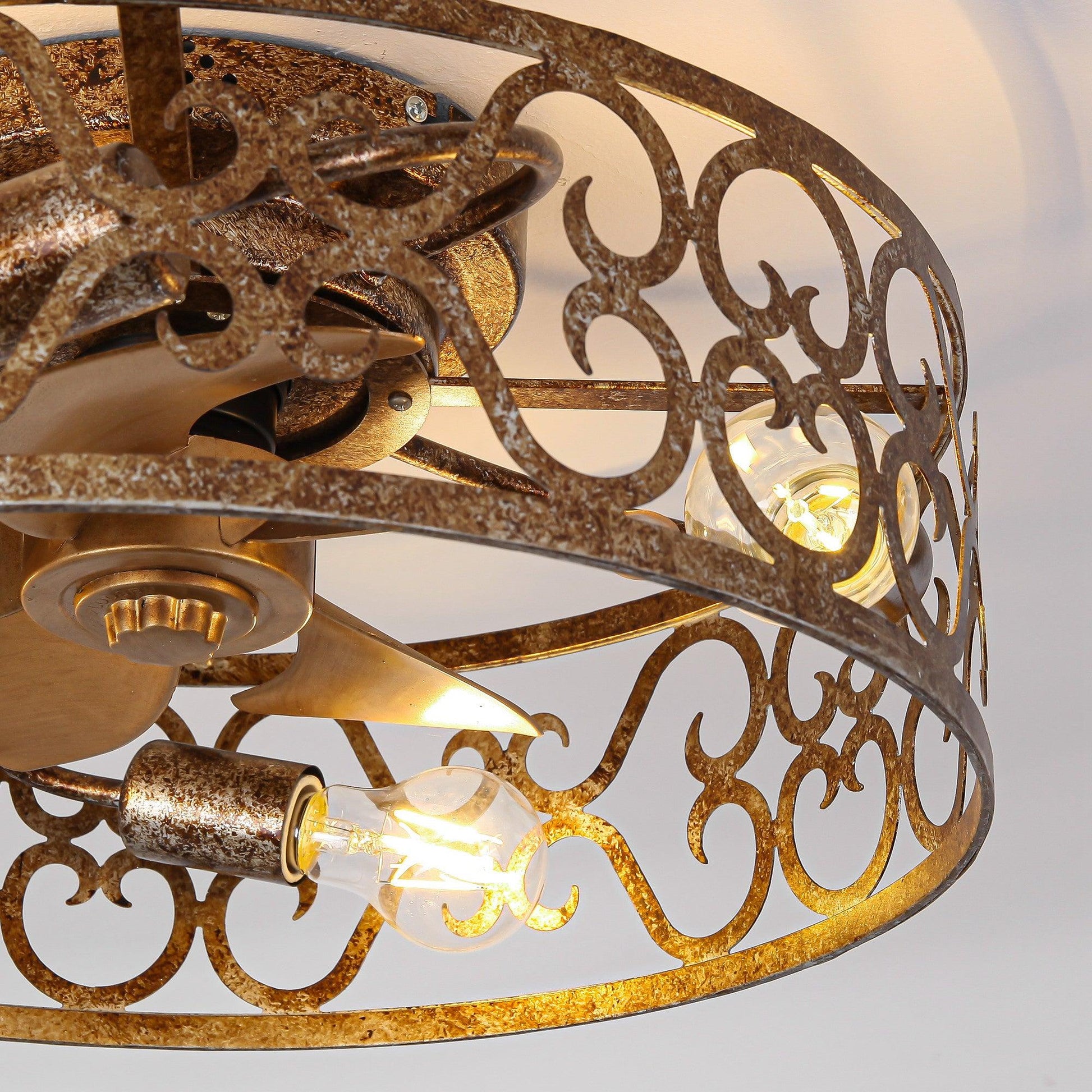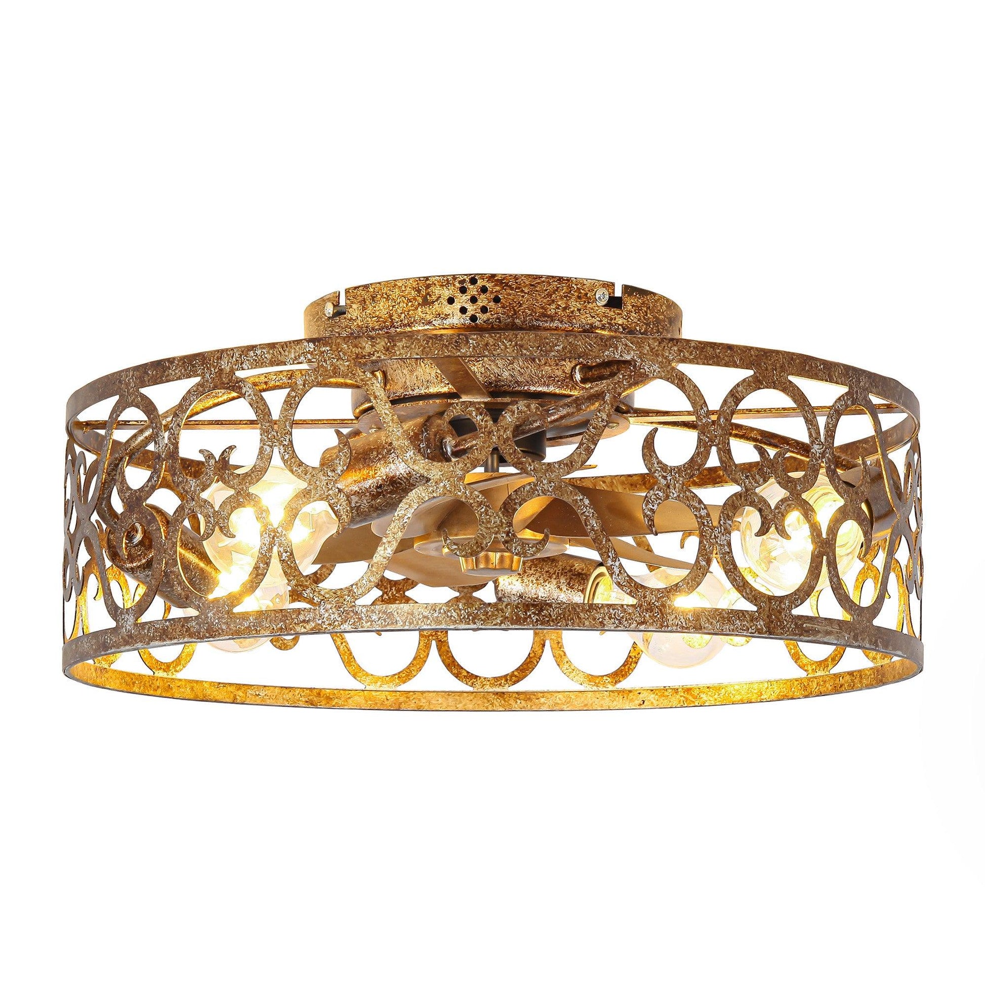 18 Inch Vintage Distressed Golden Industrial Flush Mount Ceiling Fan with Light APP and Remote Control