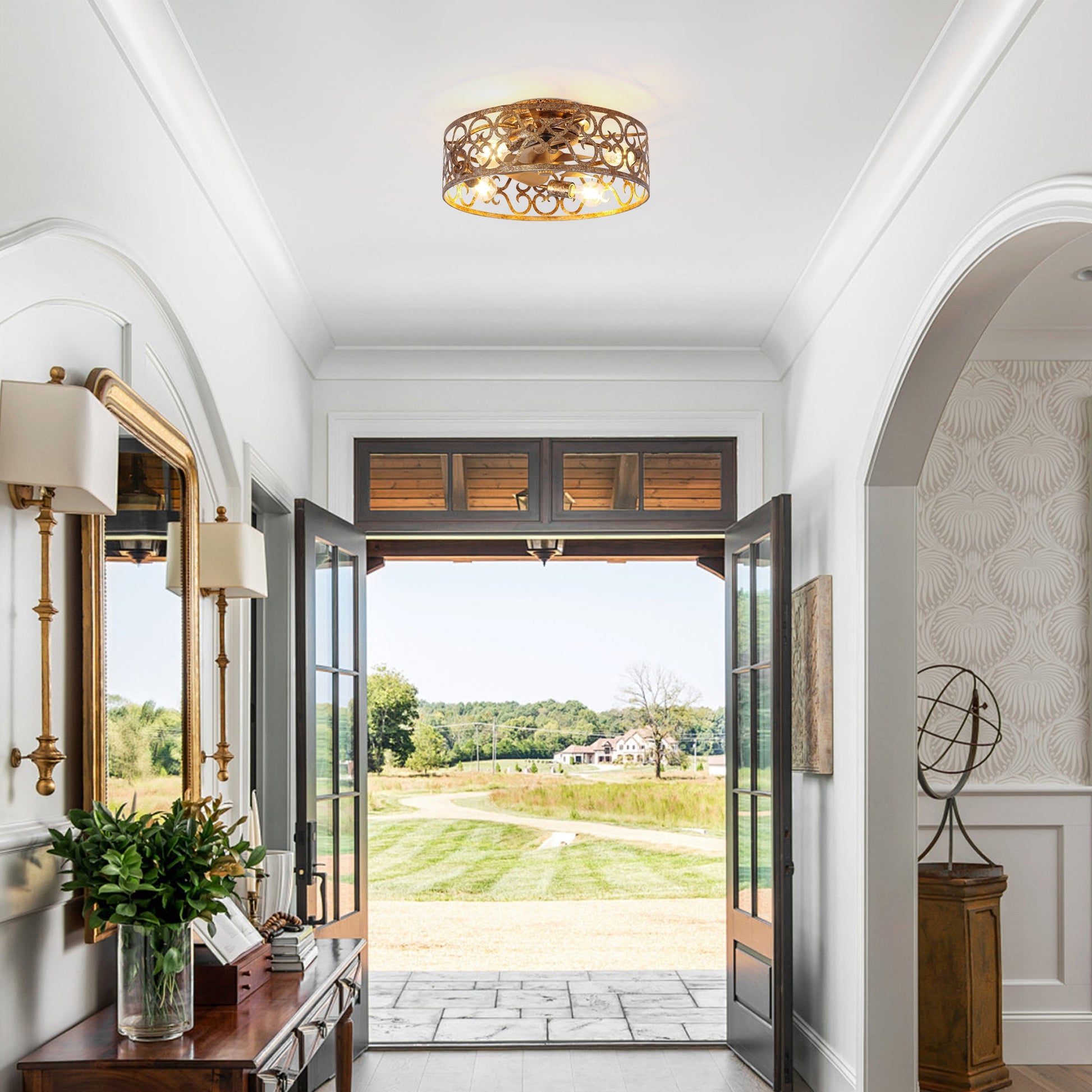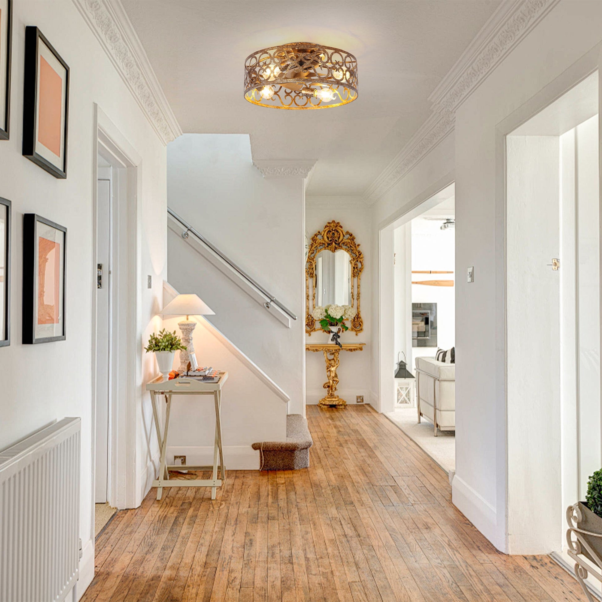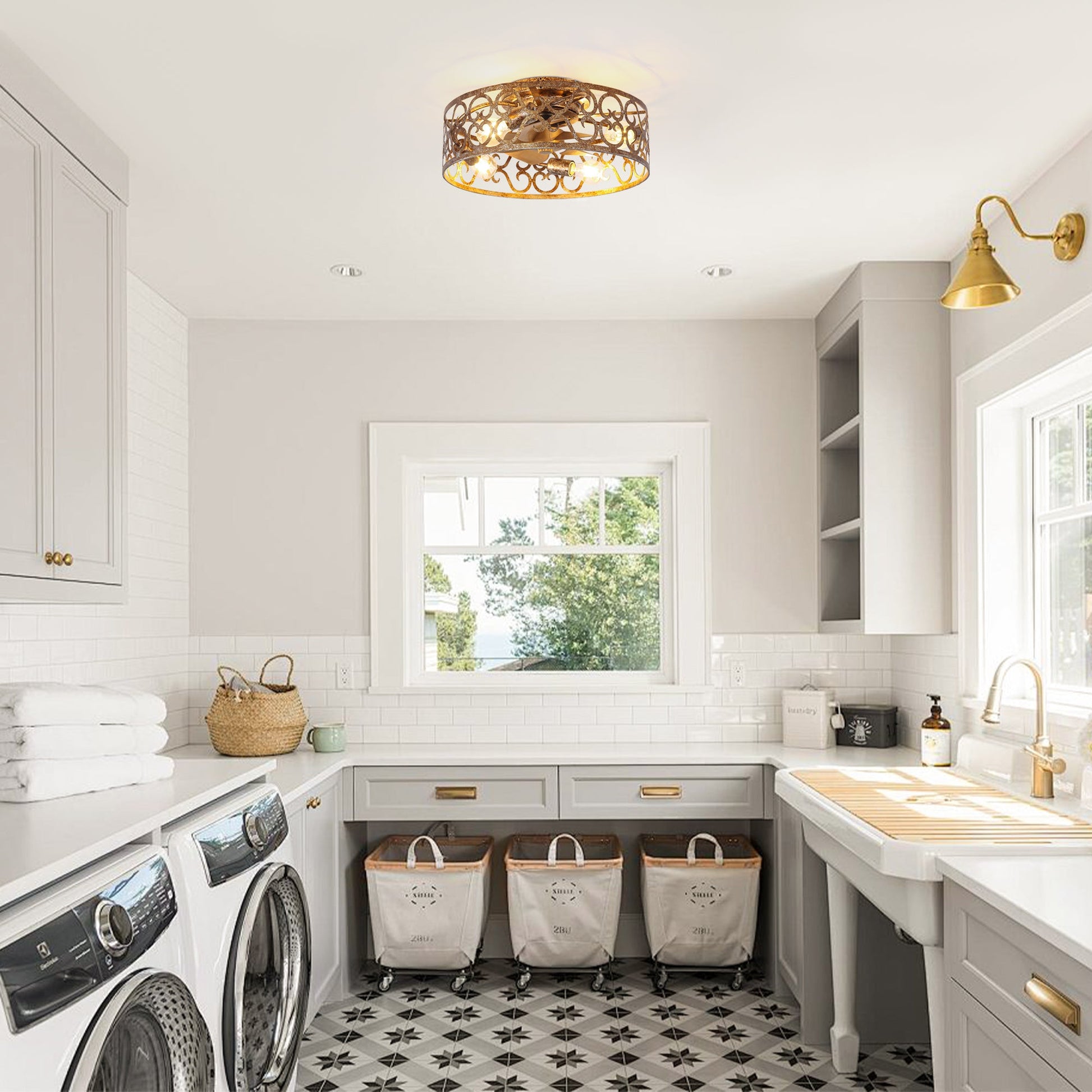 【Four-lamp expansion lighting】: Flush Mount installation, integrated 4 sets of E26 ceramic lamp holders (single lamp maximum 40W), can be freely matched with warm light/white light bulbs