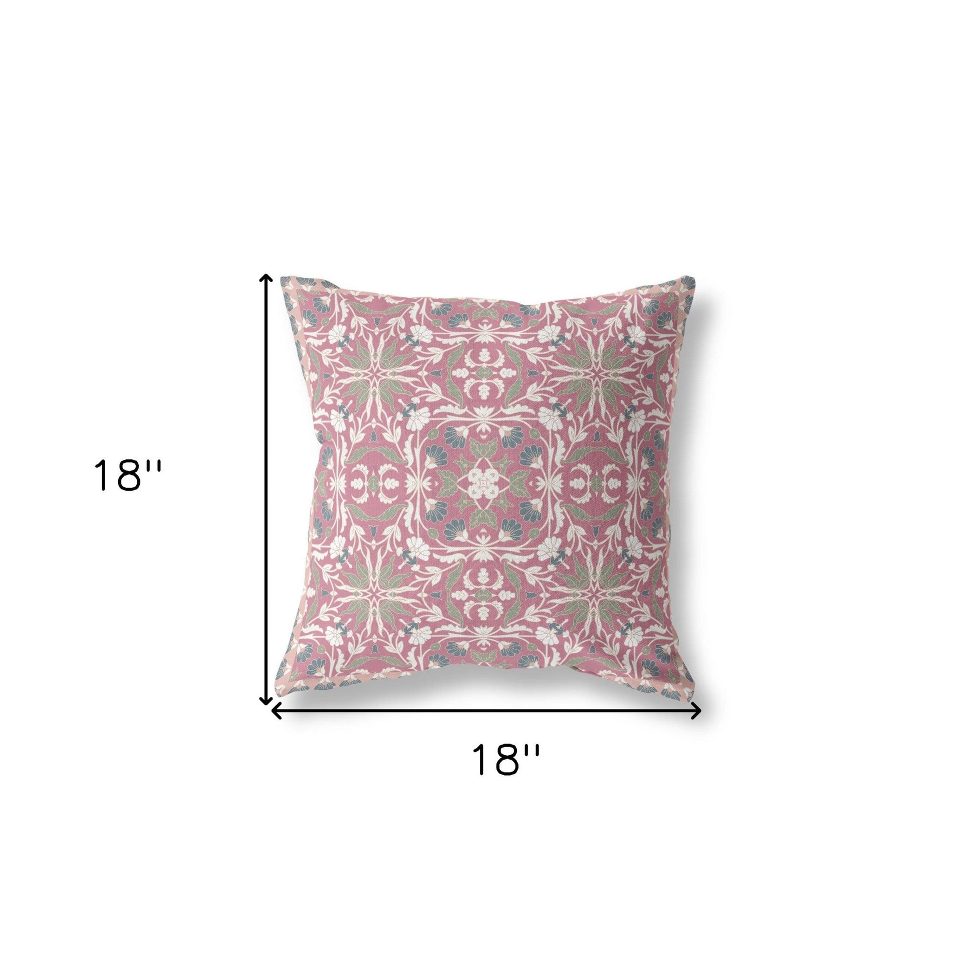 18” Magenta White Paisley Indoor Outdoor Throw Pillow