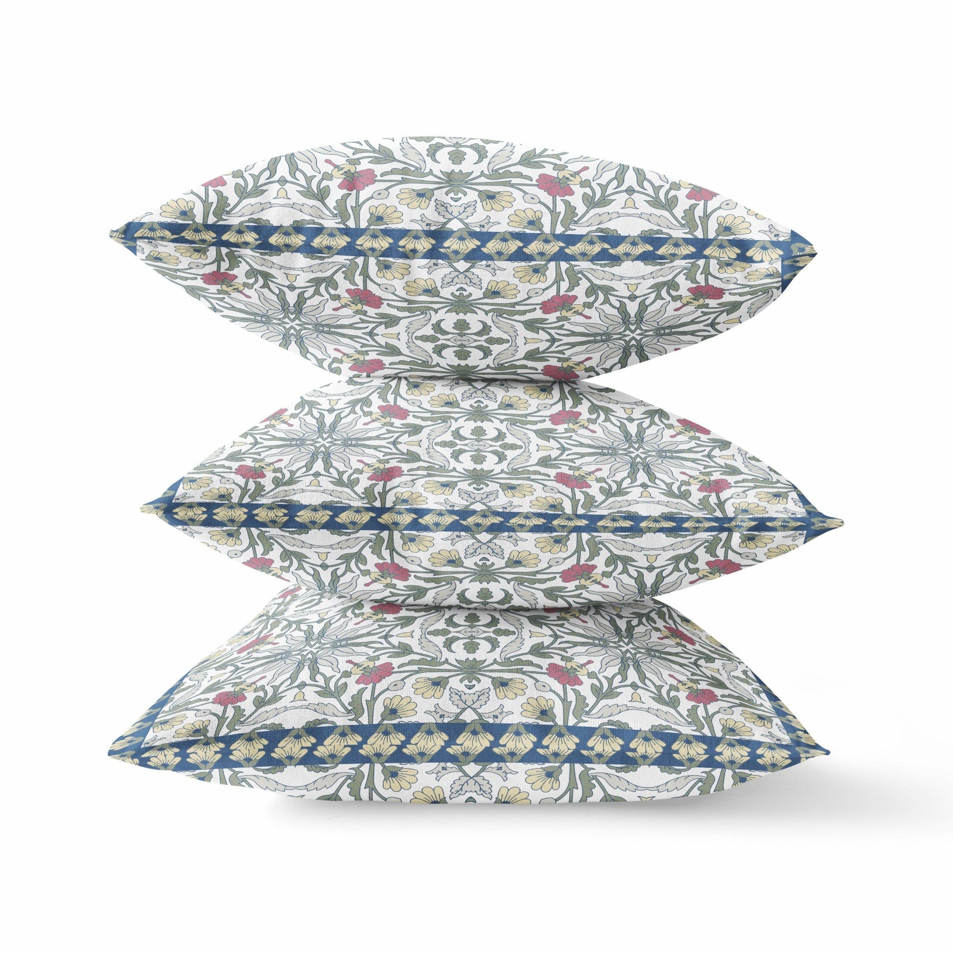 Enhance the appearance of your living space with this ethereal Pink Sage Paisley Indoor Outdoor Throw Pillow that features dainty floral patterns, bound to make you feel more calm and cheerful at the same time. The intricate florals in complementary shades of sage green and magenta pink create a splendid visual appeal upon a white base. Crafted with high-grade broadcloth fabric, it is highly durable and soft to the touch, making it the ideal accent for all your indoor and outdoor settings. This decorative blown and closed pillow comes with premium 100% polyfill making sure that its soft, cozy feel provides you with utmost comfort. Flaunting the cool-toned hues of the spectrum, this decorative pillow is an eye-soothing accent that will add to the beauty and functionality of your boho-chic living space. 18” x 18” x 5”