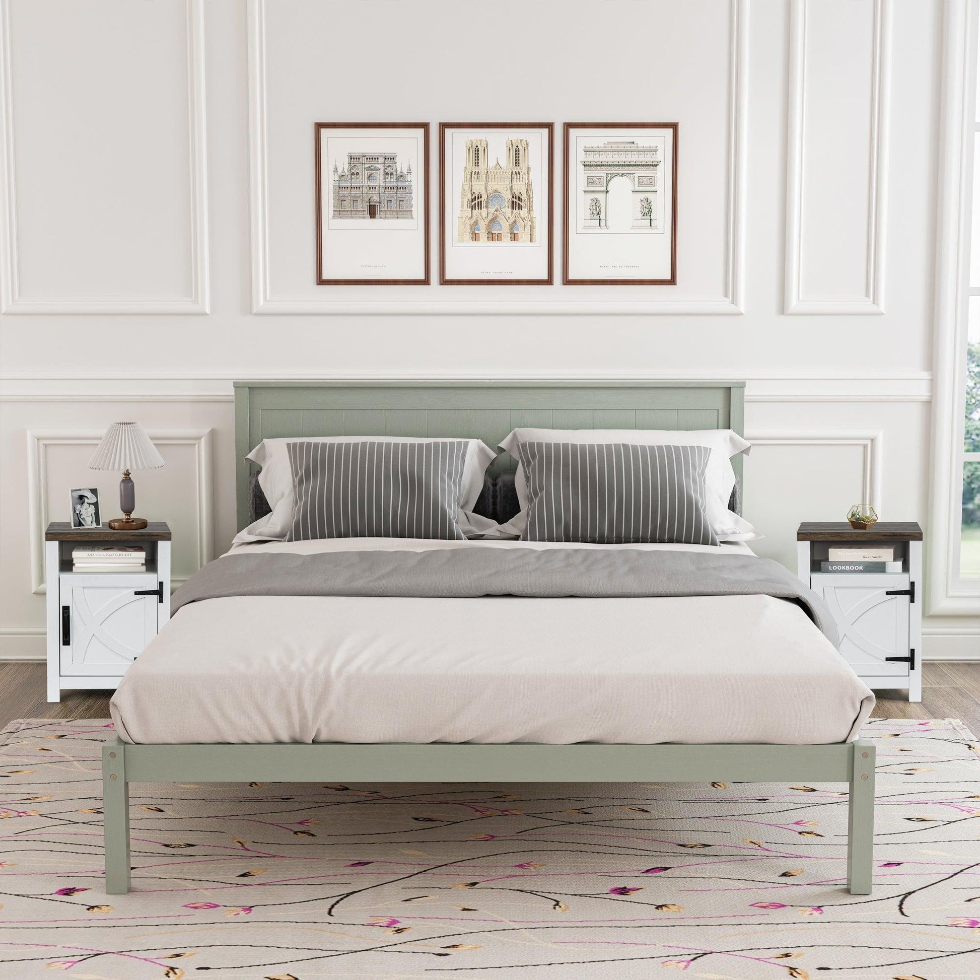 18" Solid Wood Farmhouse Nightstand for Bedroom in Brown or Grey or White