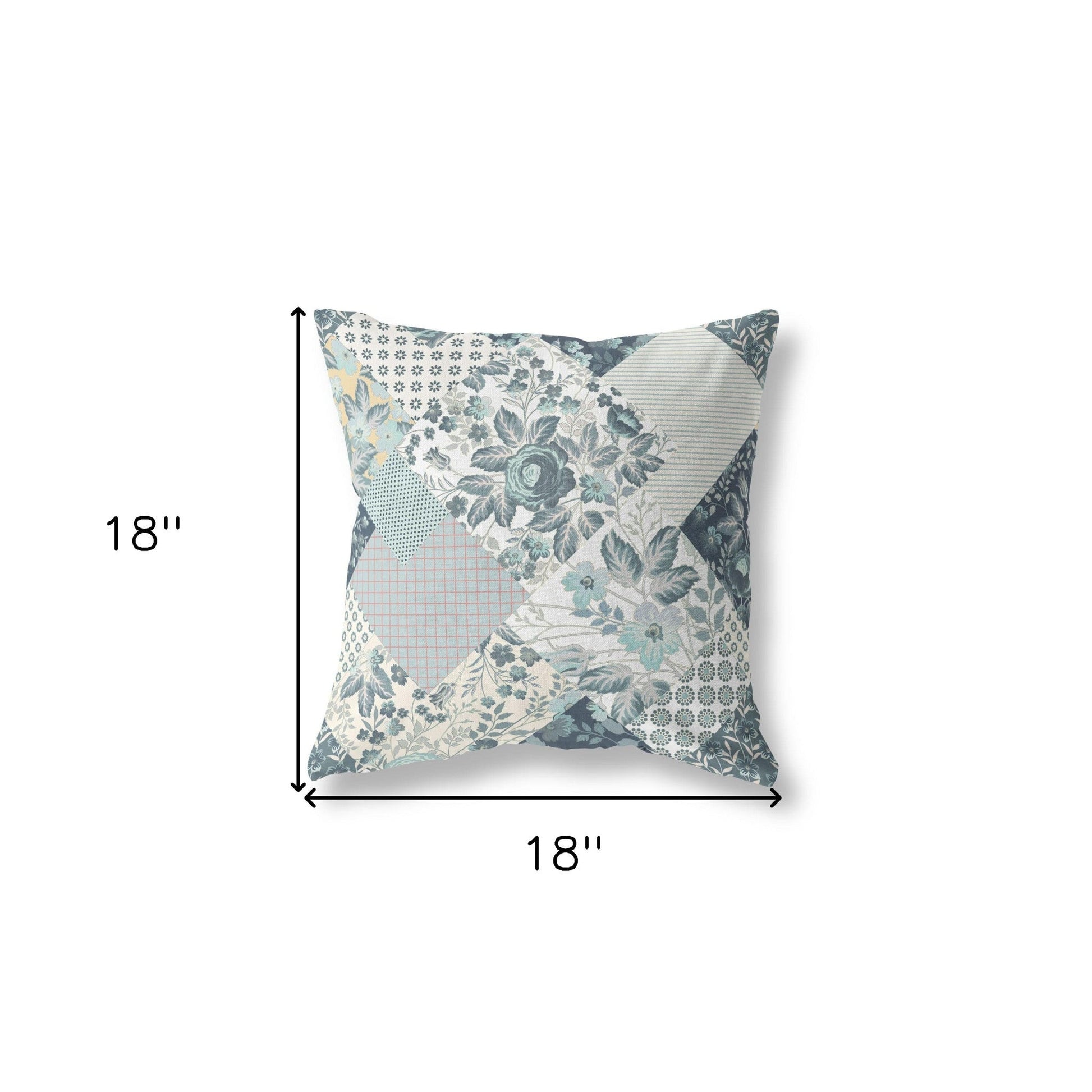 18" Teal White Boho Floral Indoor Outdoor Throw Pillow