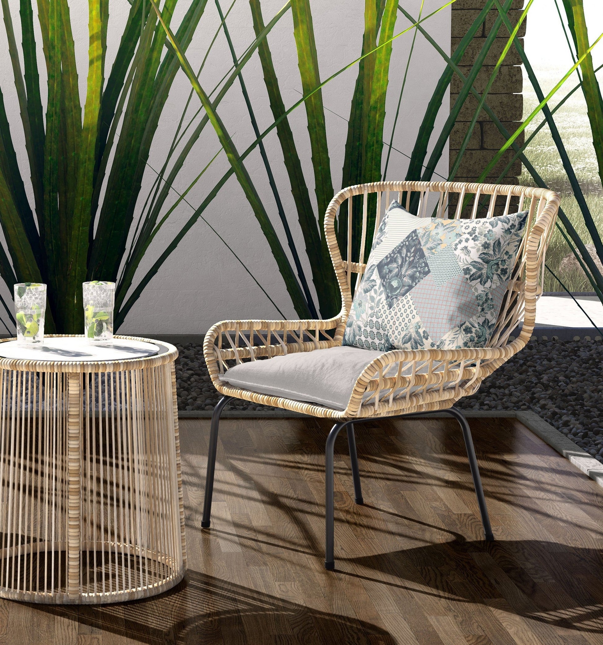 Evoke a sense of serenity into your place with this eye-soothing Teal White Boho Floral Indoor Outdoor Throw Pillow. The intricate detailing of the floral and geometric prints in stone blue, pastel blue, and white create a harmonious fusion of cool-toned colors to induce a calming atmosphere. The pristine look of the high-quality digital print on the pillow is made to last long, retaining its color intensity for years to come. Crafted in the USA with premium quality broadcloth fabric to ensure a sturdy construction with a soft hand, making it an ideal accent to add a plush look to your indoor and outdoor settings. This blown pillow features 100% polyester fiber filling, which gives the piece a luxurious cushiony feel with a fluffy nature to provide ultimate comfort when you lean on it. The neutral hues of this throw pillow will beautifully uplift the aesthetics of your living space without being loud. 18” x 18” x 5”