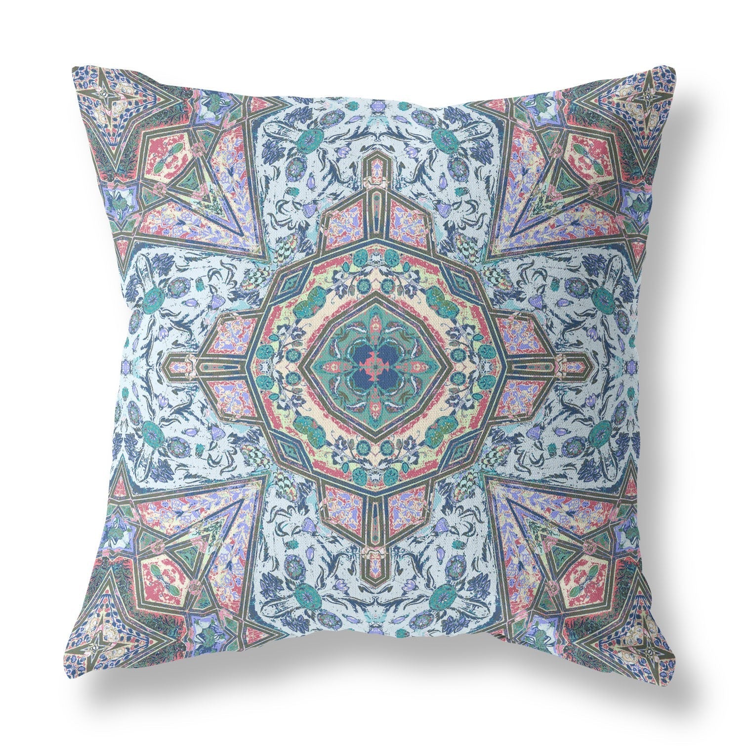 Combining a modern palette with traditional motifs, this stunning Pale Blue Pink Medallion Indoor Outdoor Zippered Throw Pillow is a new take on classic designs to suit modern décor needs perfectly. The use of soft blue and pink tones creates a mesmerizing floral medallion in a subtle contrast that is bound to stun the guests in awe. The beautiful print work is made of the highest quality to ensure the pristine look stays perfect for years to come. Made with the finest broadcloth fabric, the pillow boasts longevity and sturdiness, ideal for both indoor and outdoor use. This zippered pillow comes with a polyfill insert which makes it a cozy and comfortable resting companion after a long day. Pair this decorative throw pillow with bold or bright decors and it will seamlessly blend into a wide variety of setting while adding a sense of calm and comfort to the room. 18” x 18” x 5”