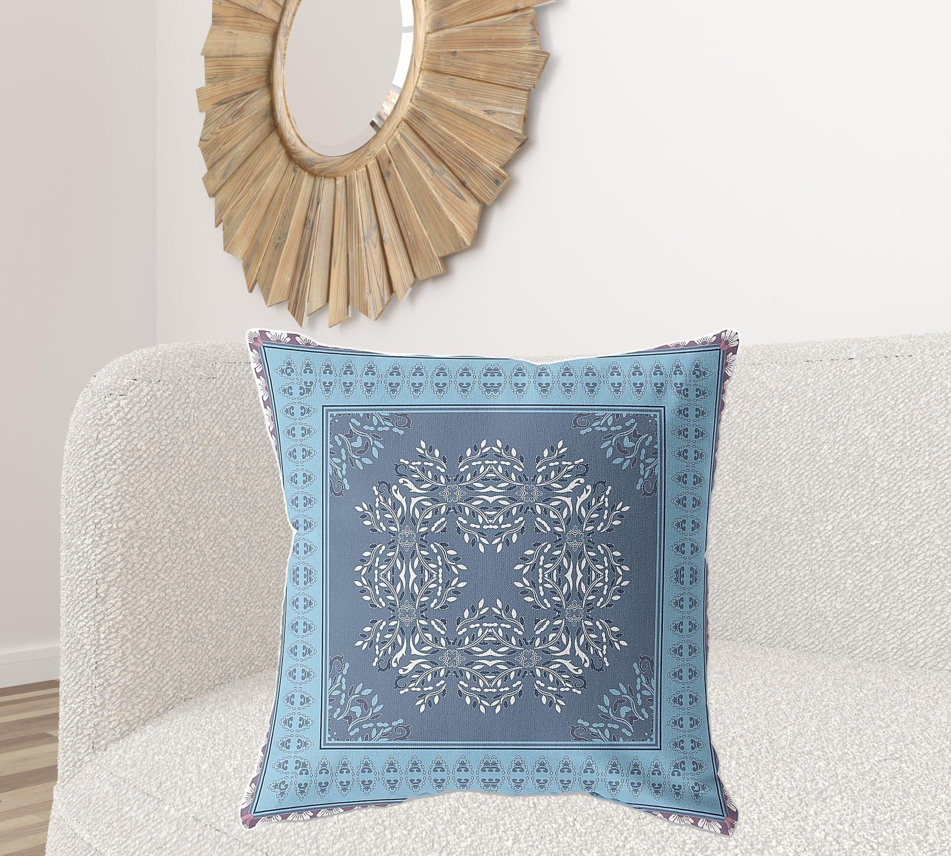 18" X 18" Blue Blown Seam Floral Indoor Outdoor Throw Pillow