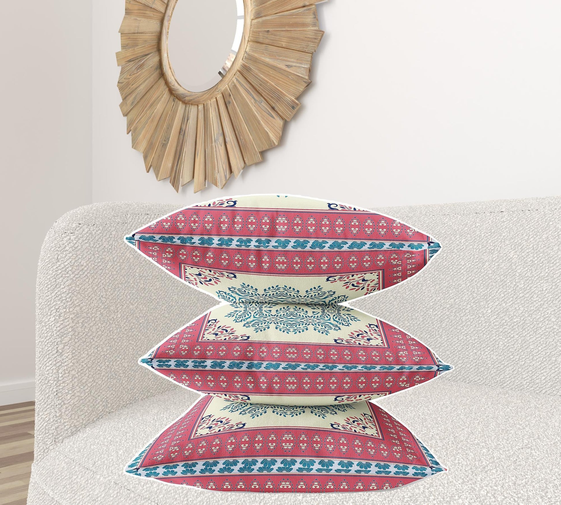 The 18" x 18" cream and blue blown seam damask indoor outdoor throw pillow is the perfect decorative accessory for your home. Durable cream and blue broadcloth has been used to give this pillow a beautiful look that will stand the test of time. Durable and easy to care for this pillow is designed to withstand the elements and still look great. Decorative pillows are a great way to change up the look and feel of your space easily and quickly. 5" H x 18" W x 18" D