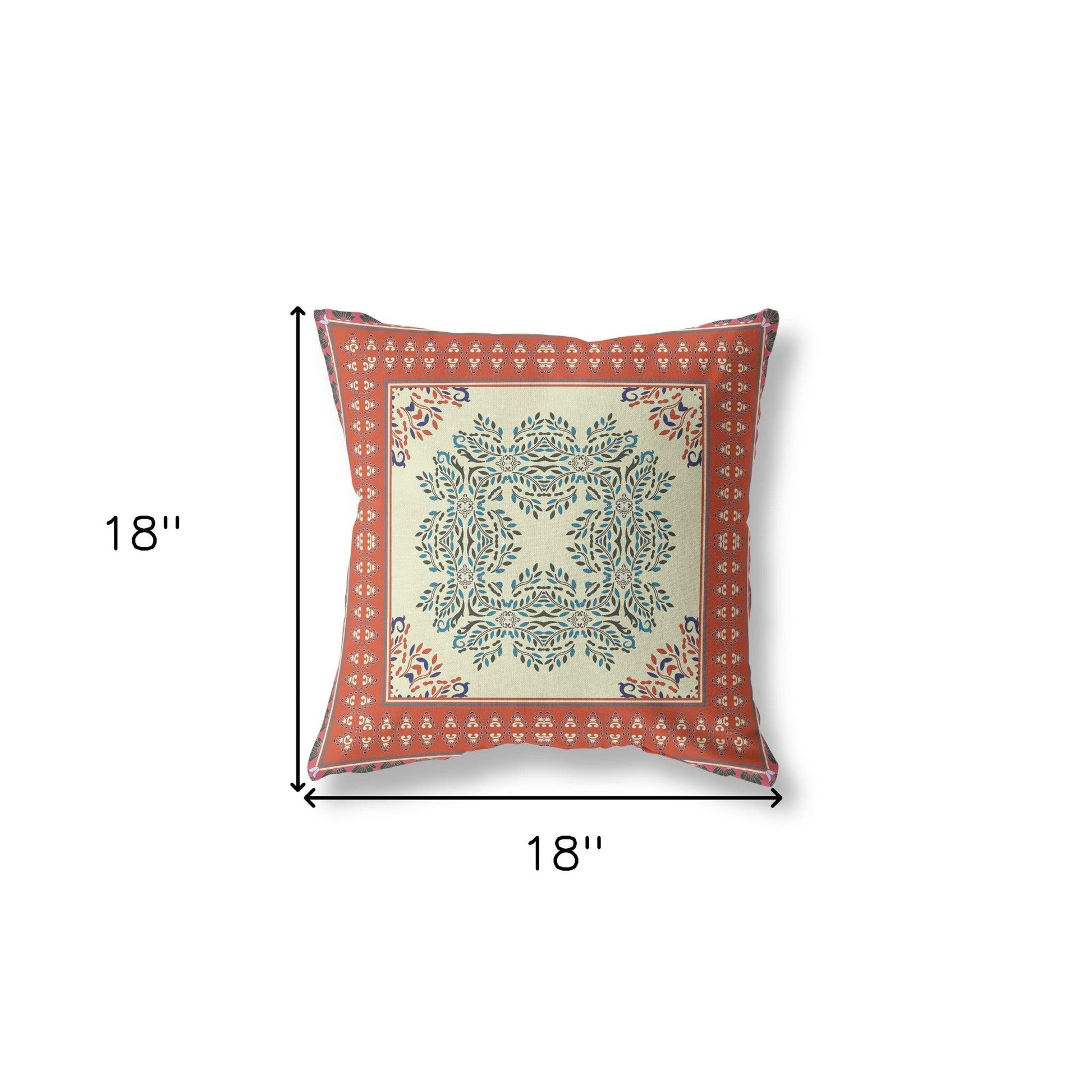 18" X 18" Cream And Orange Blown Seam Floral Indoor Outdoor Throw Pillow
