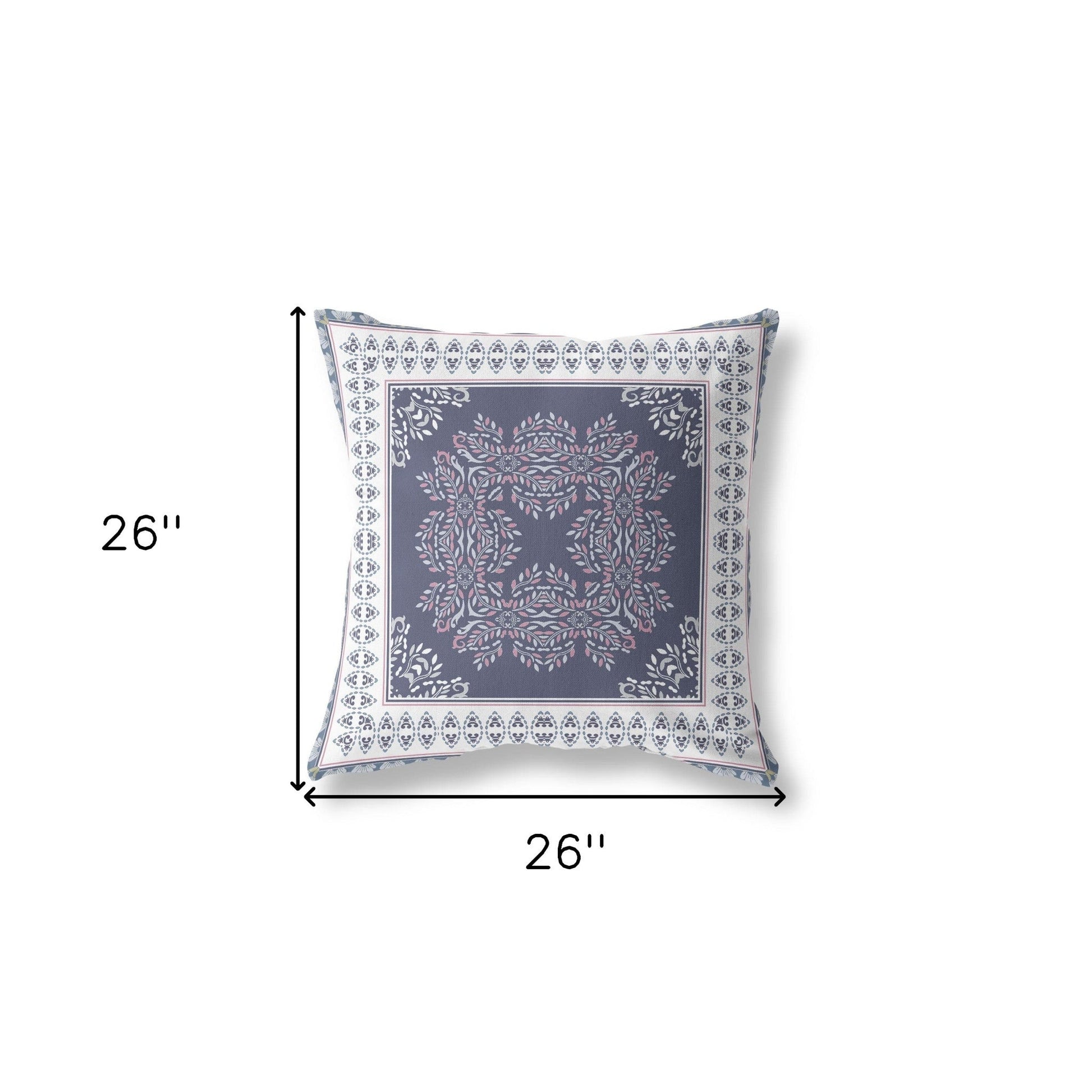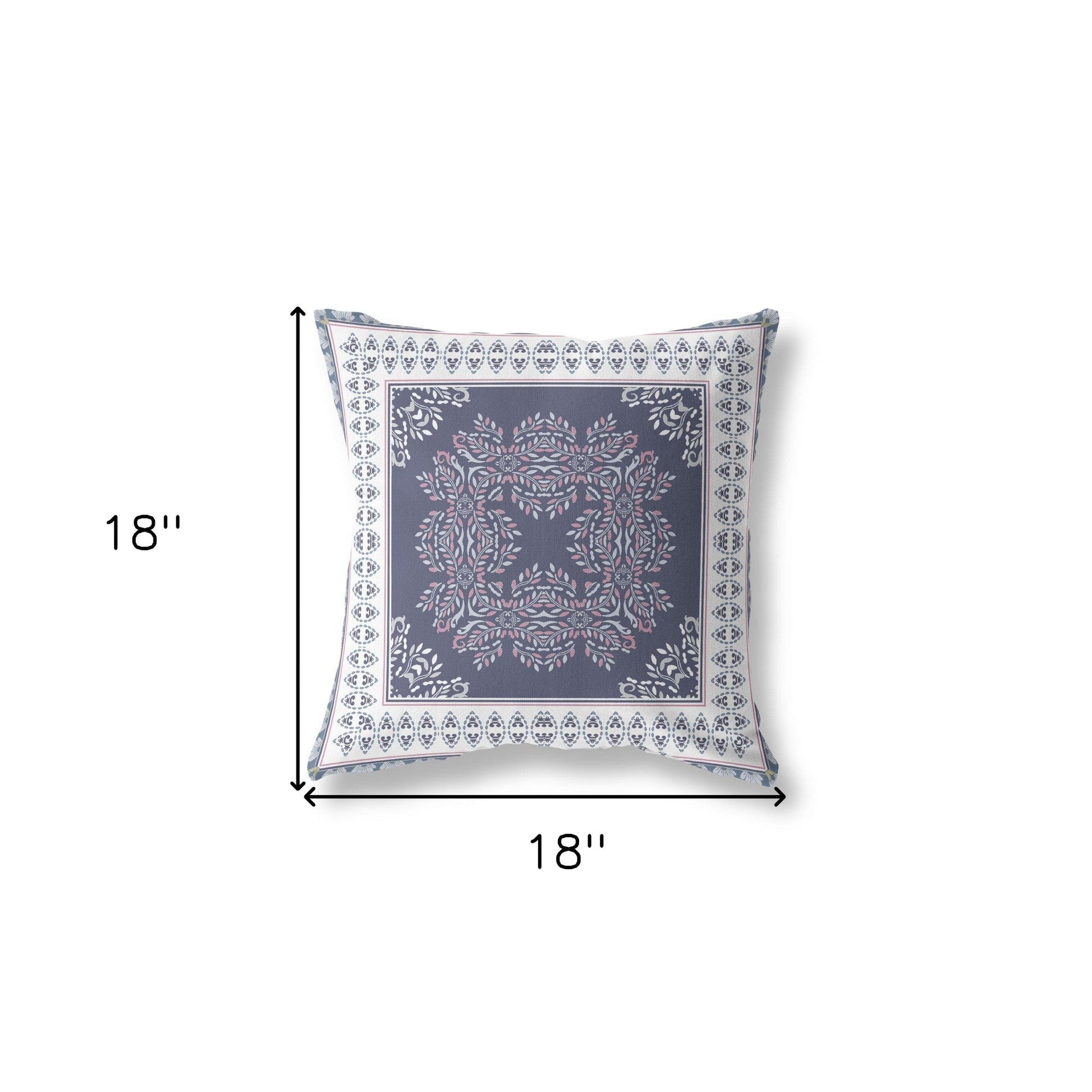 The perfect complement to your sofa, favorite chair, or bed, this 18" x 18" dark blue and white blown seam damask indoor outdoor throw pillow is a great decorative accent. This soft and durable decorative pillow is expertly made of high grade, long lasting broadcloth in a dark blue and white coloration. Durable and rugged enough for outdoors but can still be used inside as well. Great to use on its own or mix with other decorations for the perfect look. 5" H x 18" W x 18" D
