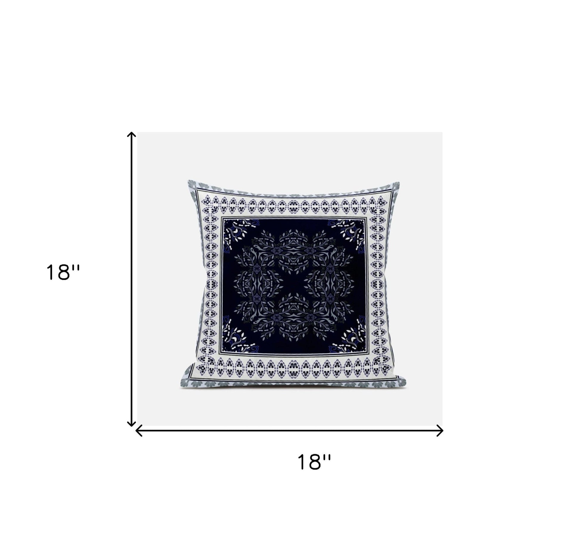Add an air of fashion to your room and rejuvenate the space with this cute and fashionable 18" x 18" dark blue and white blown seam geometric indoor outdoor throw pillow. This dark blue and white colored decorative pillow is made from high grade suede that is durable and long lasting. Durable and rugged enough for outdoors but can still be used inside as well. A great decorative accessory for your favorite chair or to accent your sofa. 5" H x 18" W x 18" D