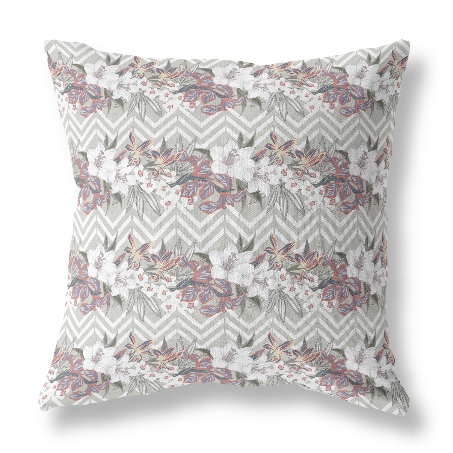 18" X 18" Grey And Pink Blown Seam Floral Indoor Outdoor Throw Pillow