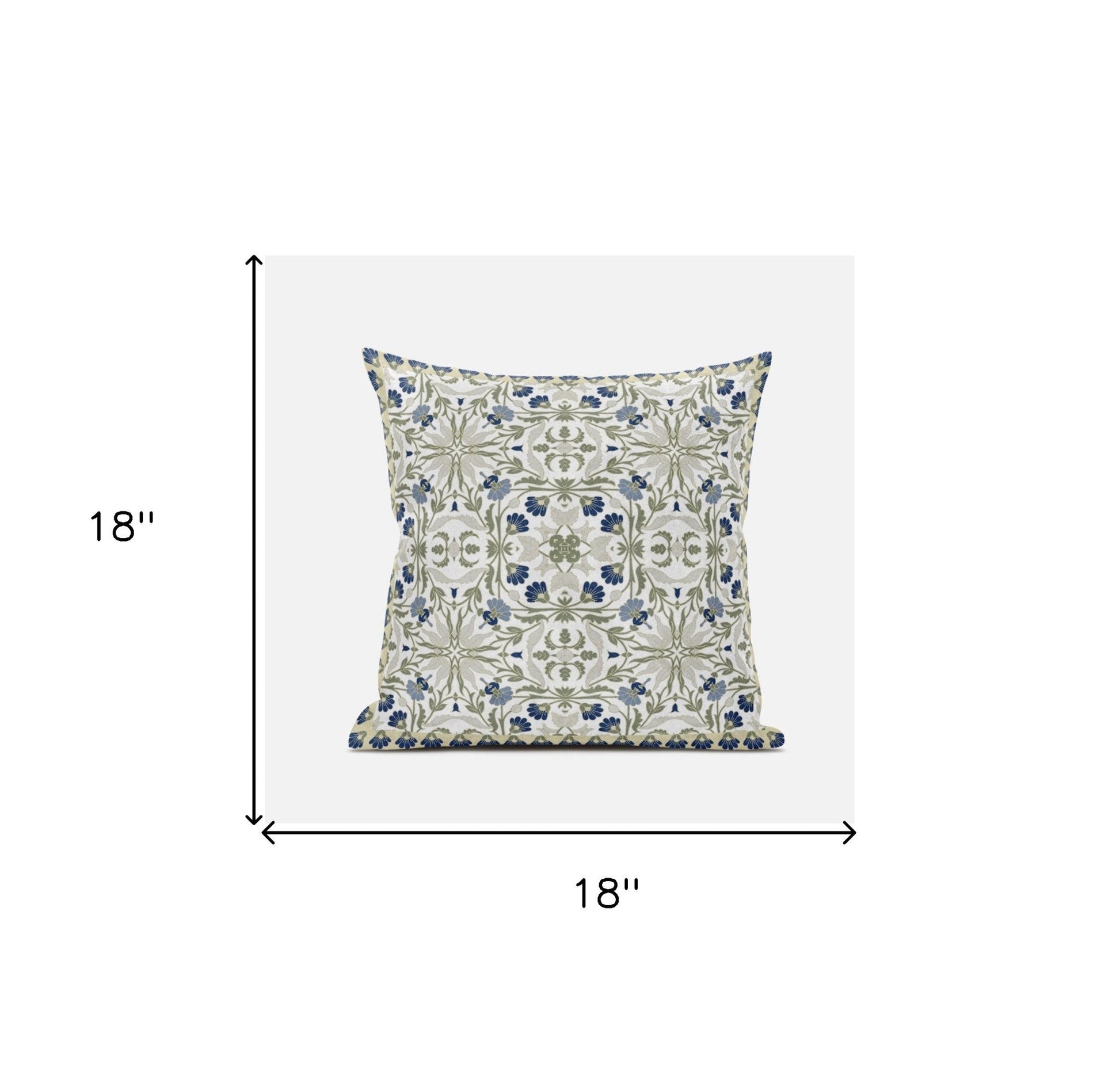 18" X 18" Indigo And White Blown Seam Paisley Indoor Outdoor Throw Pillow