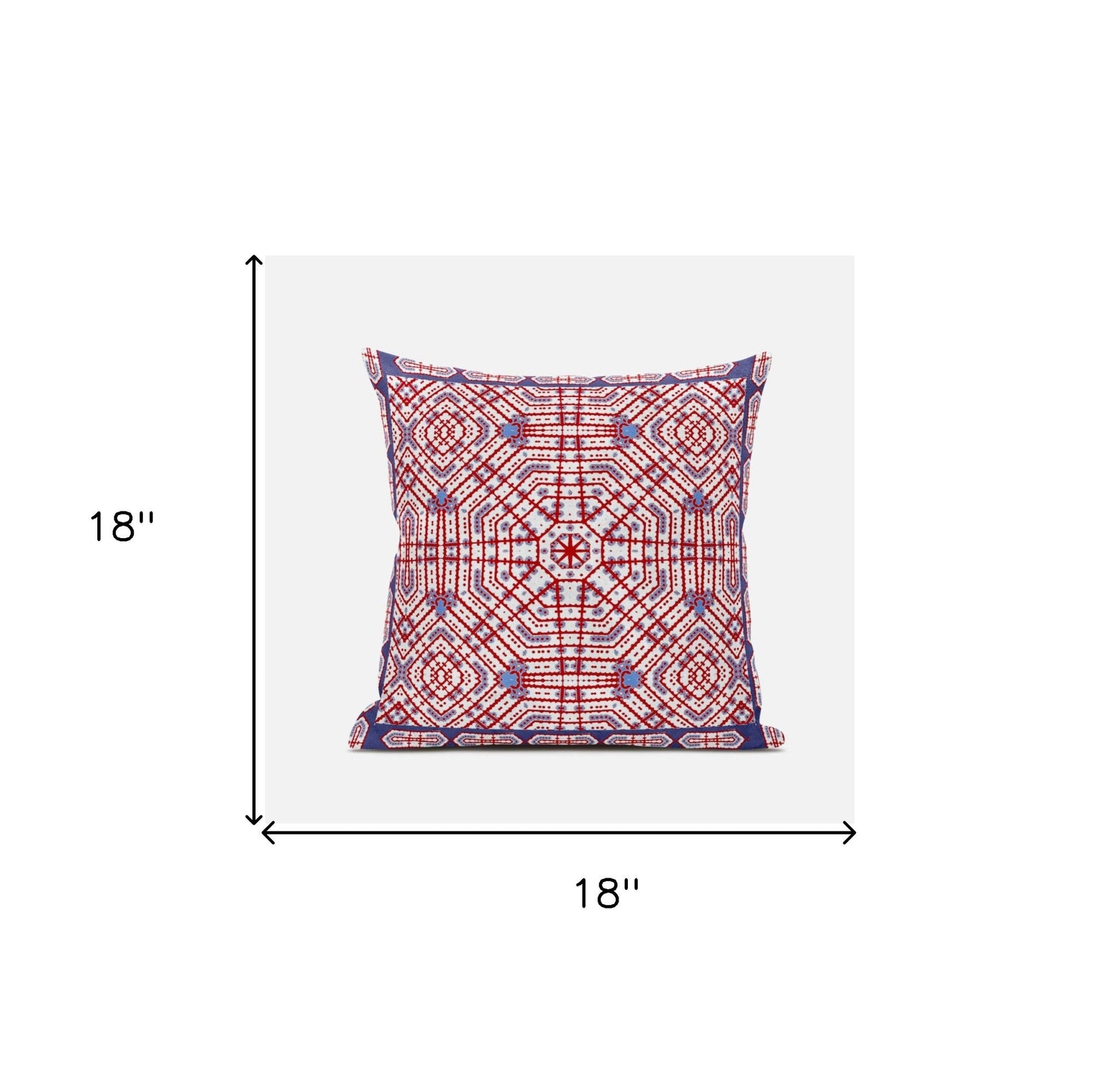 Add an air of fashion to your room and rejuvenate the space with this cute and fashionable 18" x 18" red and blue blown seam geometric indoor outdoor throw pillow. This red and blue colored decorative pillow is made from high grade suede that is durable and long lasting. Will add some color and dimension to your space indoors or out. Decorative pillows are a great way to change up the look and feel of your space easily and quickly. 5" H x 18" W x 18" D