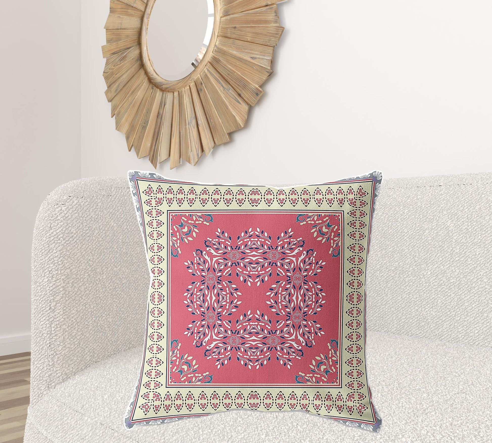 This 18" x 18" red and cream blown seam floral indoor outdoor throw pillow will add a beautiful decorative accent to your decor. This soft and durable decorative pillow is expertly made of high grade, long lasting broadcloth in a red and cream coloration. Durable and rugged enough for outdoors but can still be used inside as well. Great to use on its own or mix with other decorations for the perfect look. 5" H x 18" W x 18" D