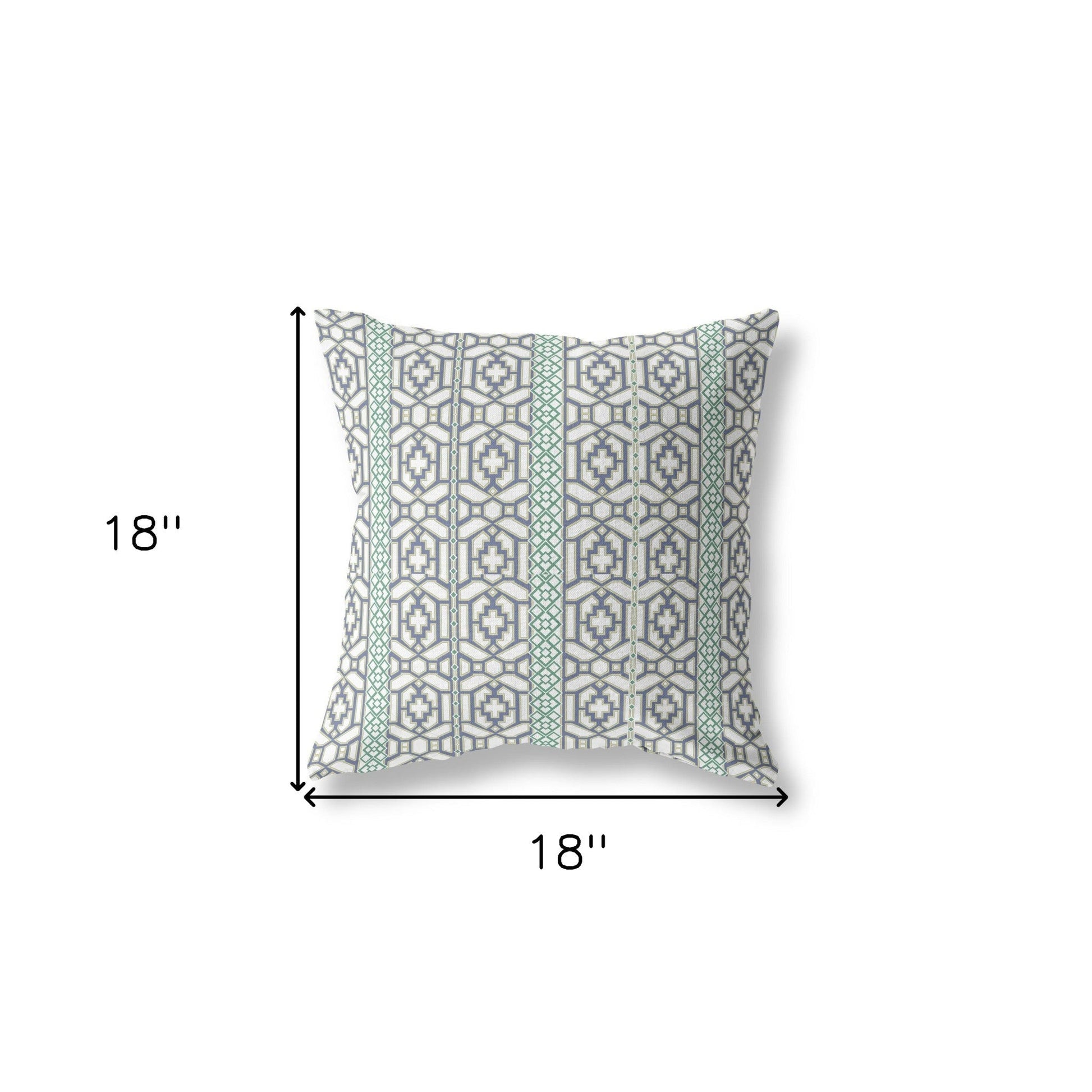 18" X 18" White And Gray Zippered Geometric Indoor Outdoor Throw Pillow
