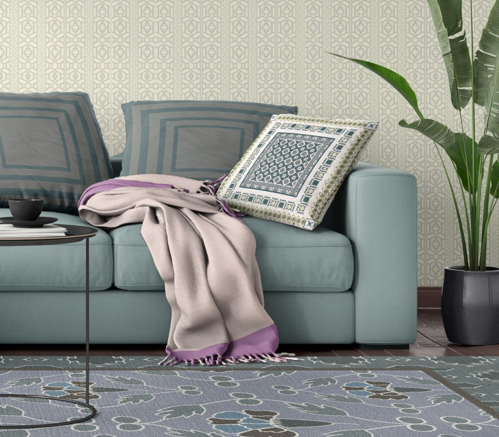 18" X 18" White And Green Zippered Floral Indoor Outdoor Throw Pillow