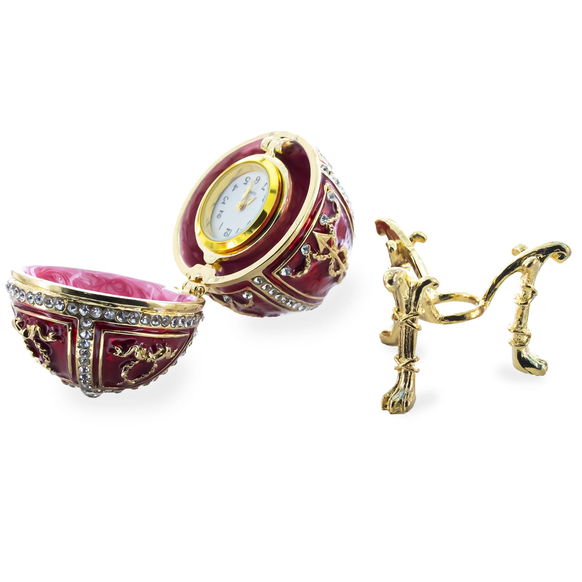 This hand-painted sparkling egg is adorned with a high-polished red enamel with golden trim.