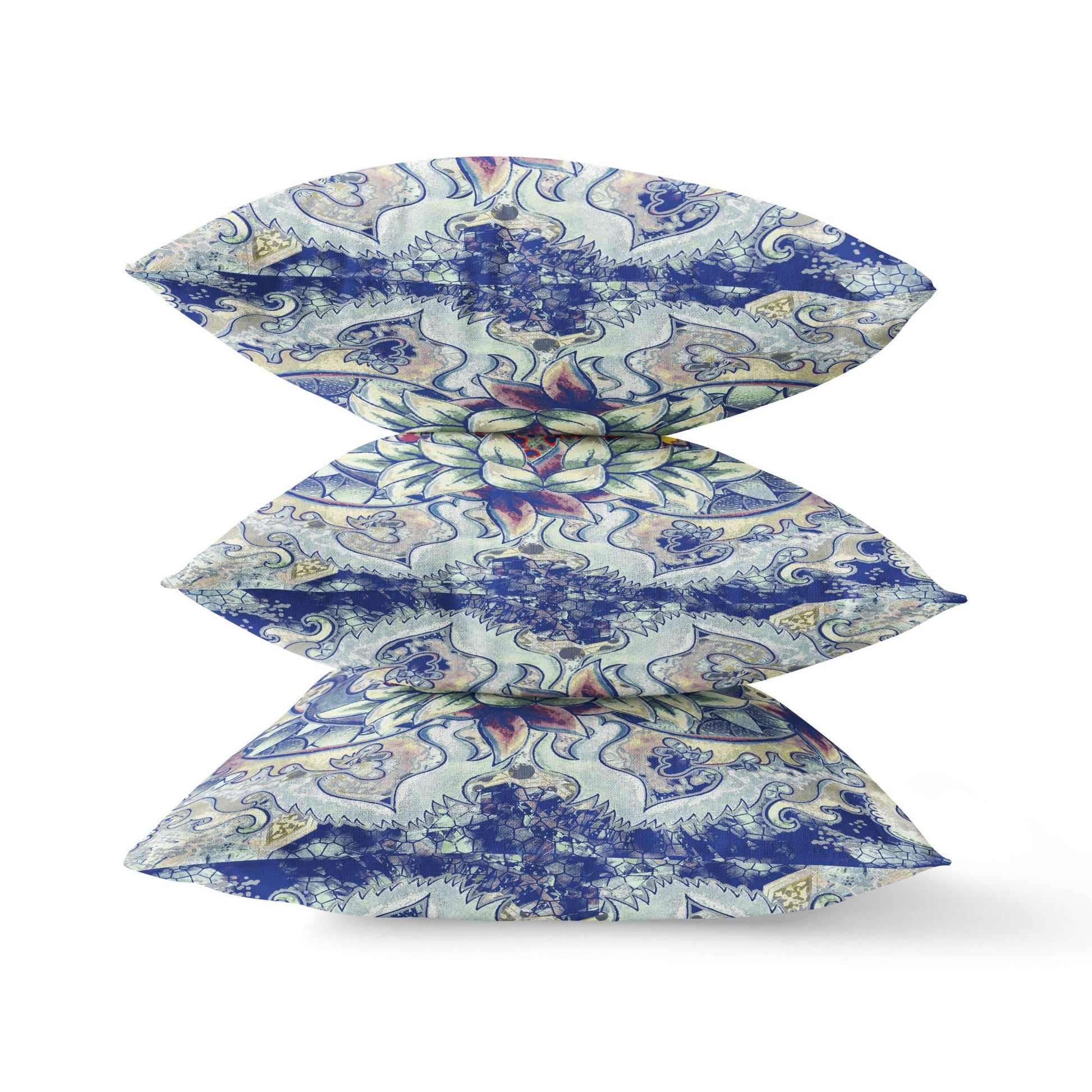 The 18"x18" blue gray yellow red zippered broadcloth geometric throw pillow is the perfect decorative accessory for your home. Great to use on its own or mix with other decorations for the perfect look. A great decorative accessory for your favorite chair, to accent your sofa, or to use as part of your bed ensemble. 5" H x 18" W x 18" D