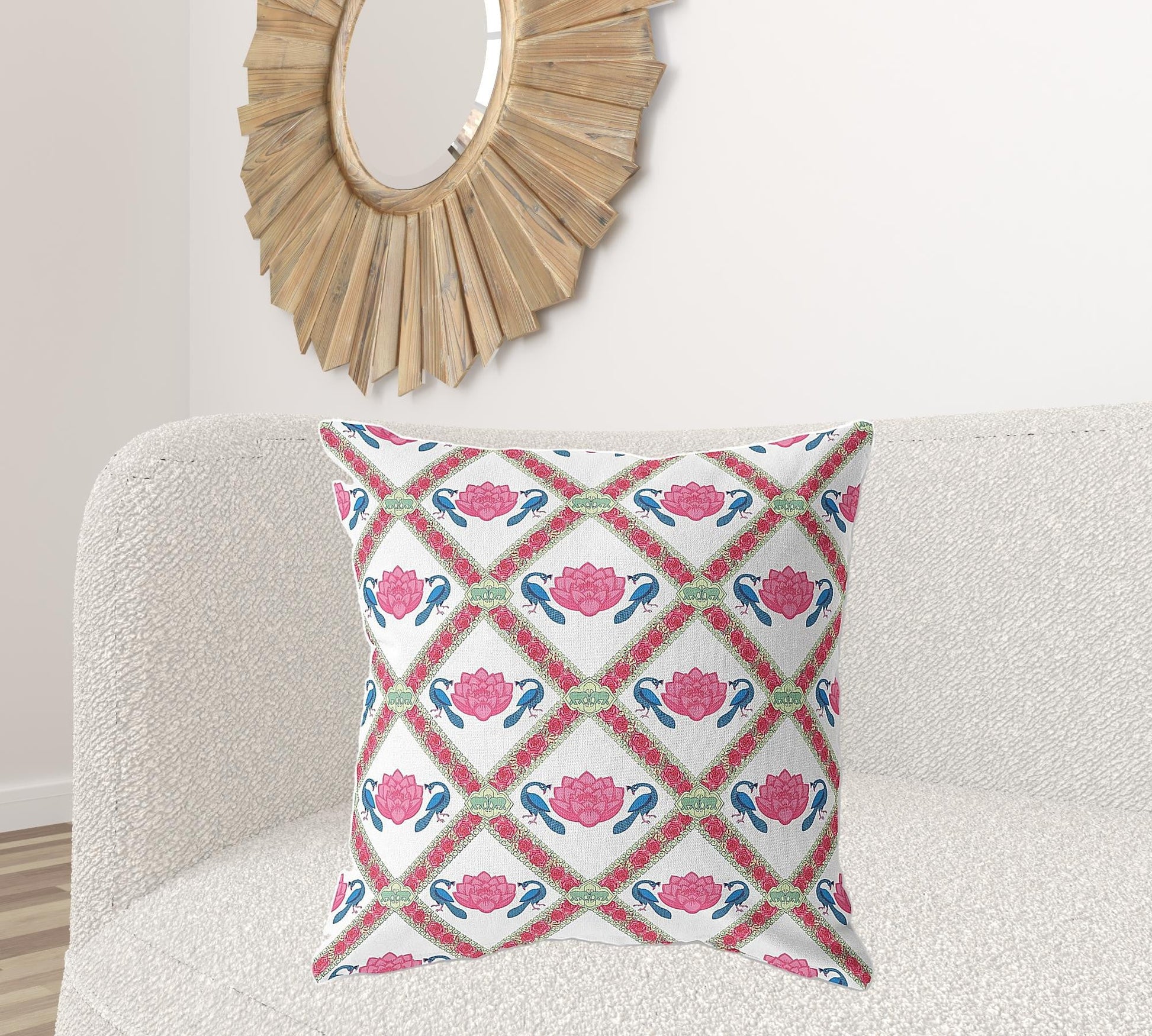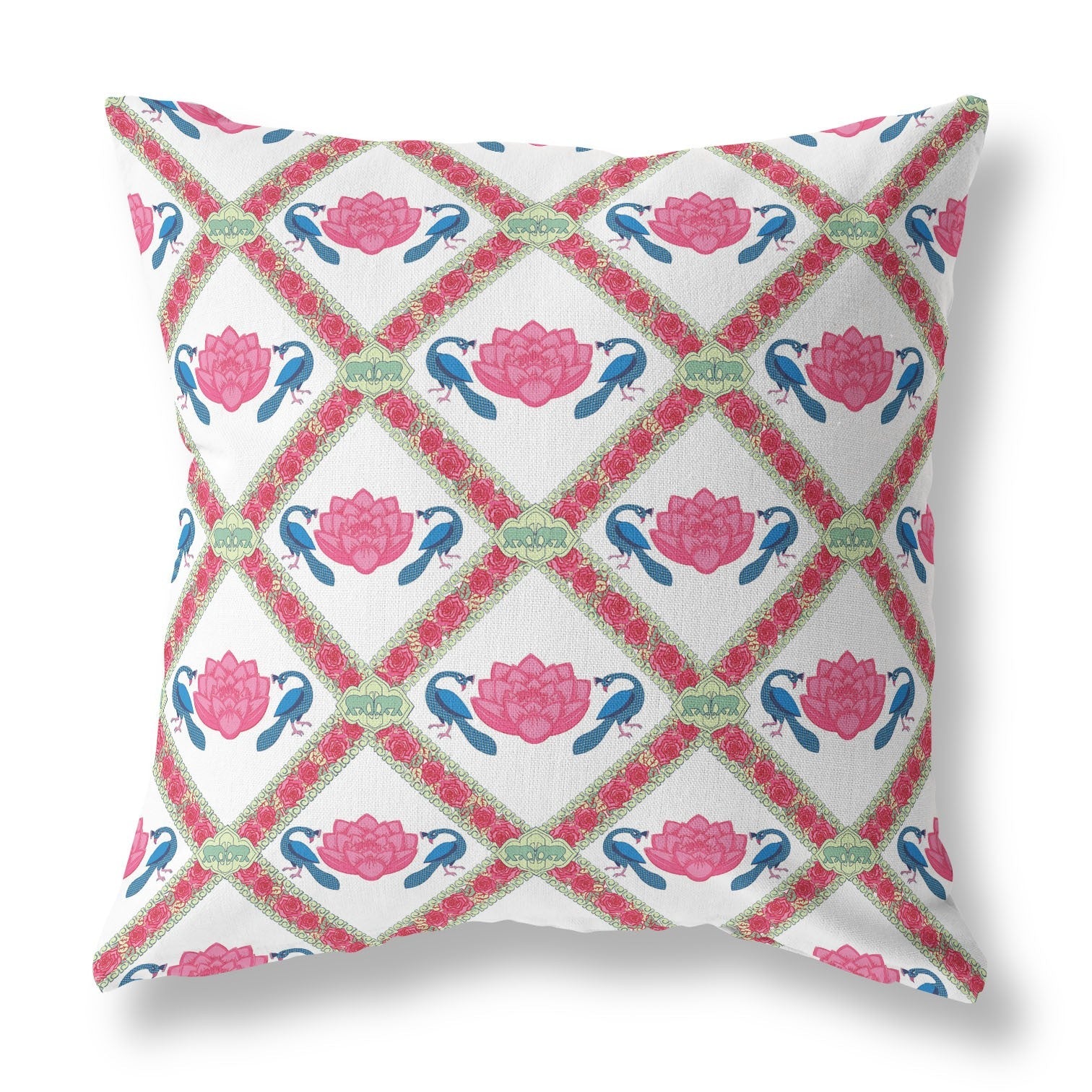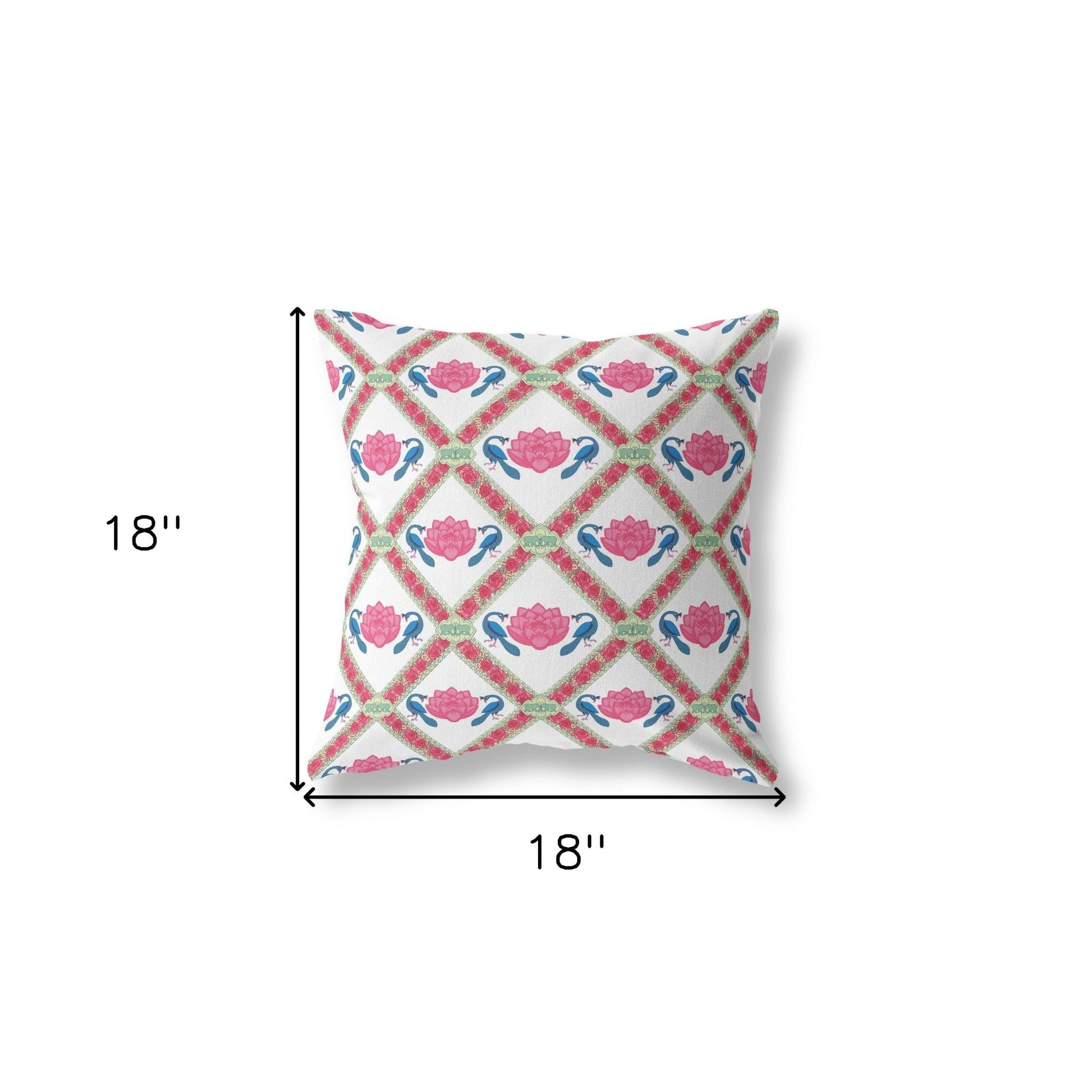18"x18" Pink Blue White Zippered Broadcloth Geometric Throw Pillow