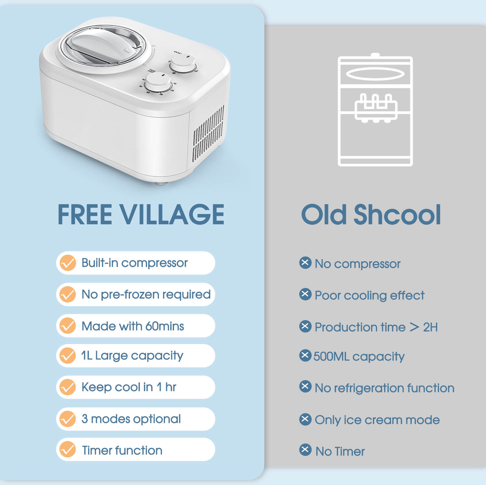 - Our ice cream machine eliminates the need for pre-freezing ingredients, thanks to its high-performance compressor.