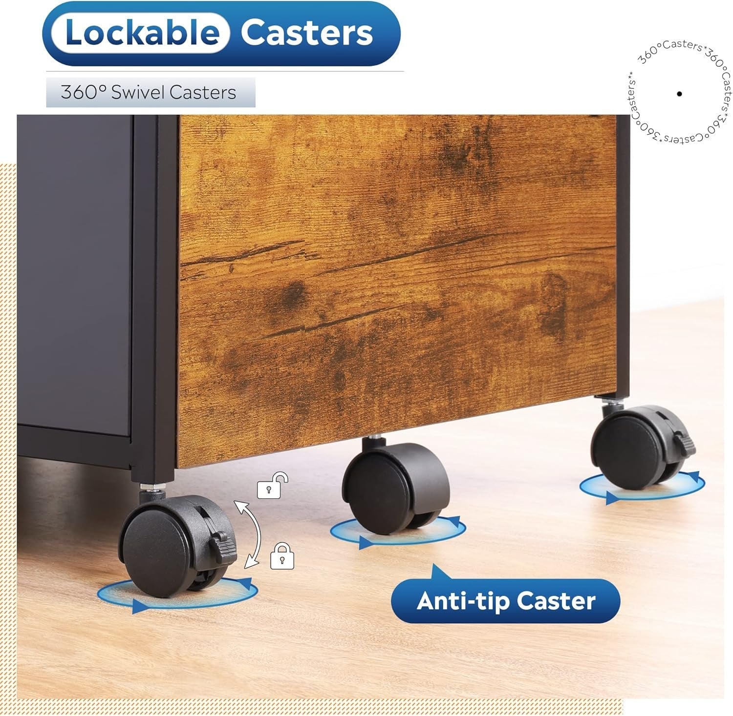 Transform your home office with a space-saving 2 Drawer File Cabinet that also functions as a mobile printer stand. Built in a warm rustic brown, this versatile filing cabinet blends durability with style to keep your workspace tidy and inviting.