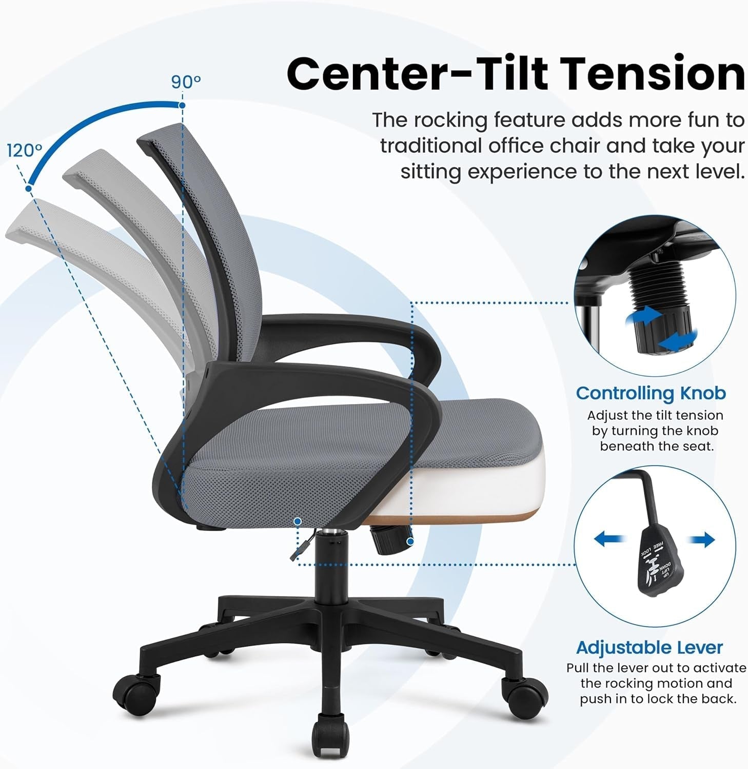 - Ergonomic backrest with lumbar support: Curved design follows your natural spine curve to reduce fatigue during long work sessions.