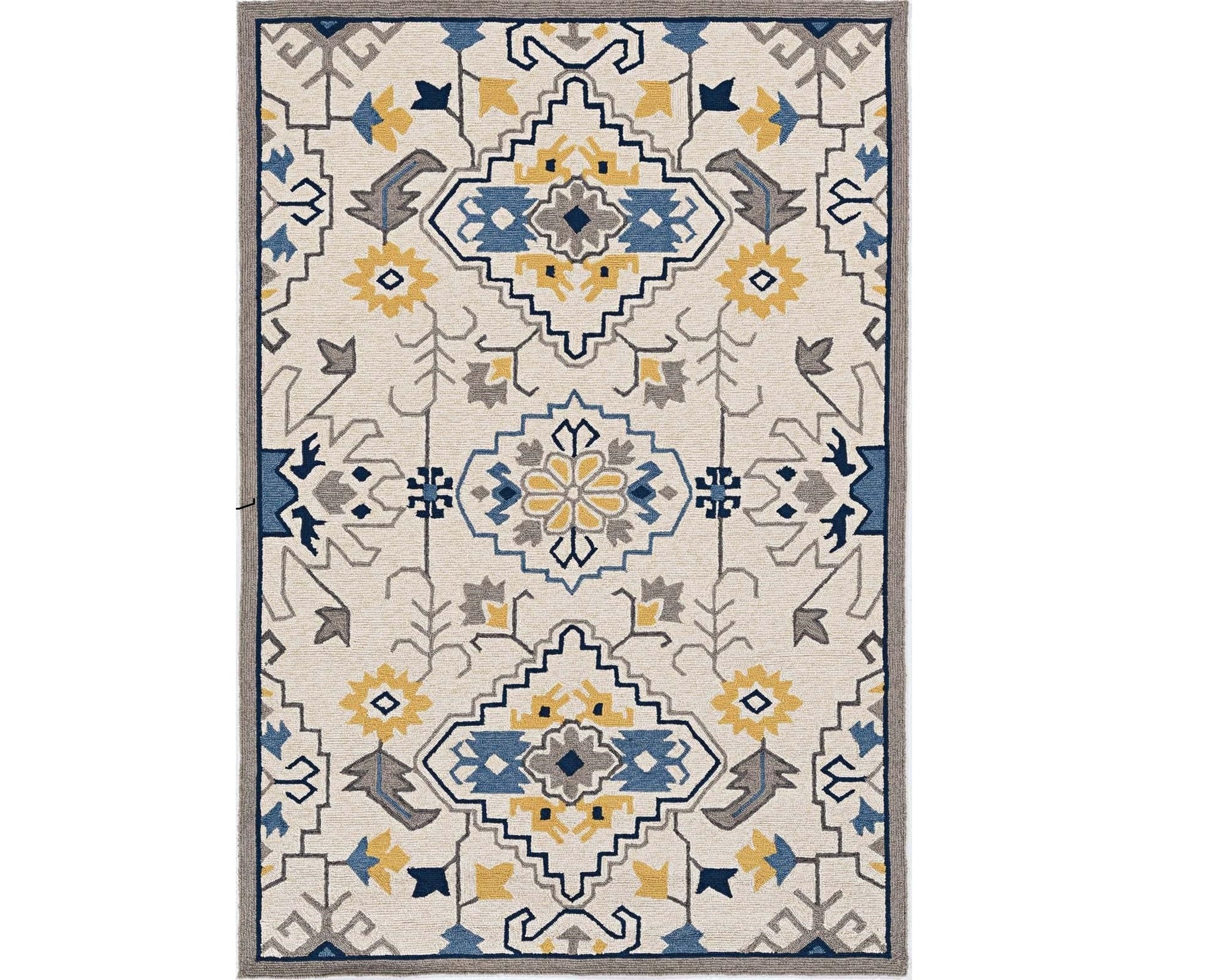 Set an inviting tone in your space with this 2-foot x 3-foot ivory southwestern hand tufted area rug. This rectangle shaped rug features a southwestern design in ivory to give it visual interest. A classic shape marries with good looking design for your space the coloring of this rug adds a delightfully neutral tone to your home and will easily match with most any decor. Place this area rug against a hardwood or tile floor and it will enliven your living space with style and sophistication. 24-inch H x 36-inch W x 0.5-inch D