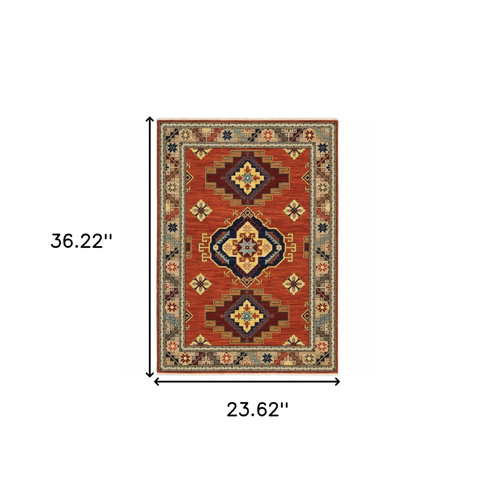 2' X 3' Red and Gold Oriental Power Loom Area Rug