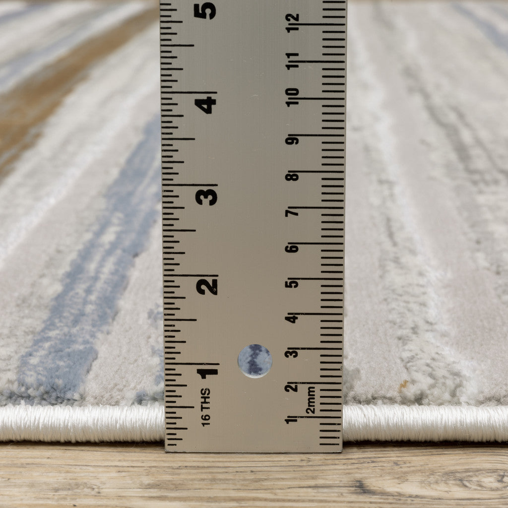 Add some artistry to your room with this 2' x 8' grey blue ivory brown beige and navy abstract power loom stain resistant runner rug. This runner shaped rug features a abstract design in grey blue ivory brown beige and navy to give it visual interest. A classic shape marries with good looking design for your space Ideal for spaces with kids and pets, this rug is stain resistant to help repel stains and spilled liquids. Area Rugs help to give warmth and sense of home to your space. 1" H x 26.77" W x 90.55" D