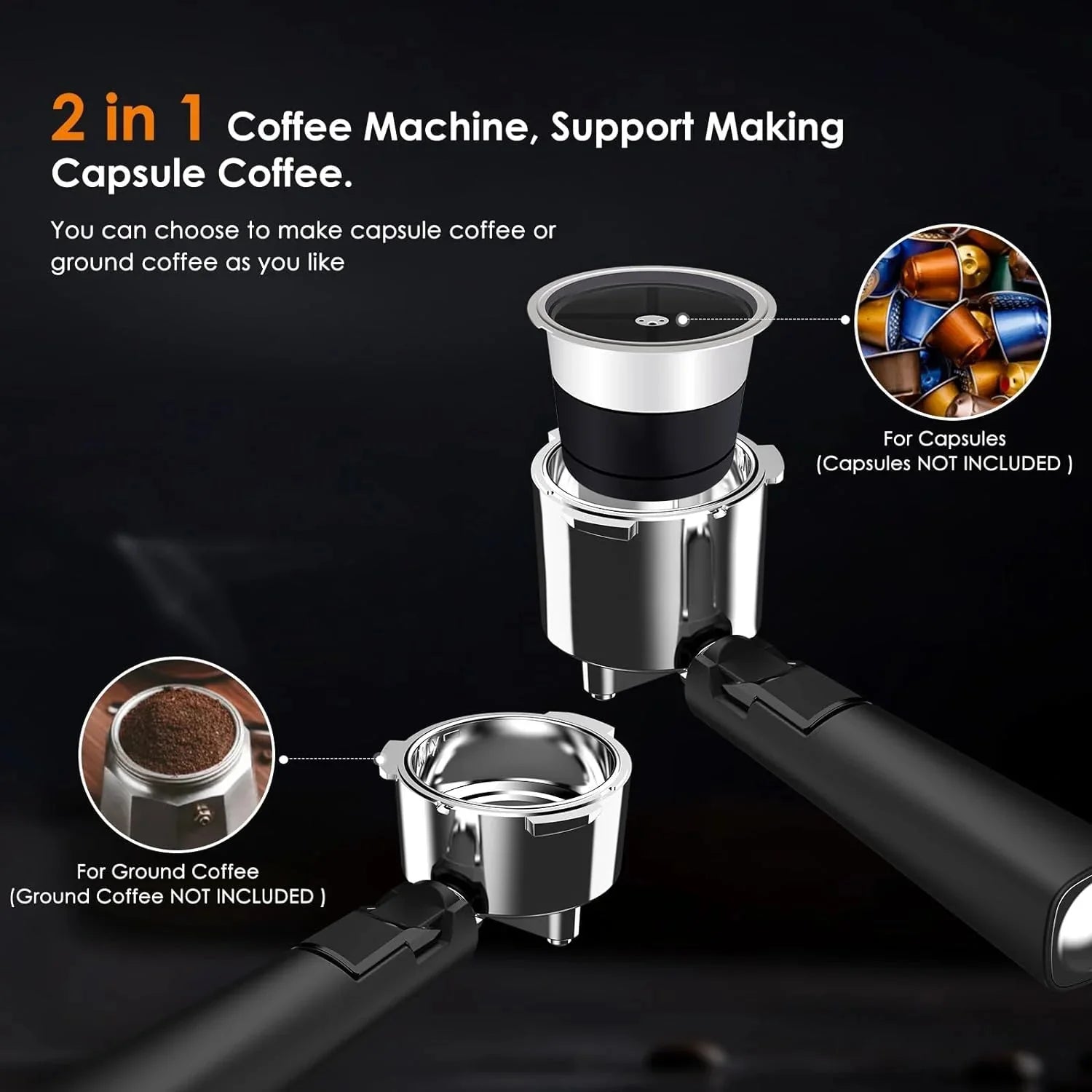 【Precision Temperature Control】Our espresso coffee machines feature PID smart temperature control, keeping accuracy within 30°F. It offers convenience with a removable drip tray and a 2.8-liter detachable water tank. ETL certified for peace of mind as you enjoy your coffee