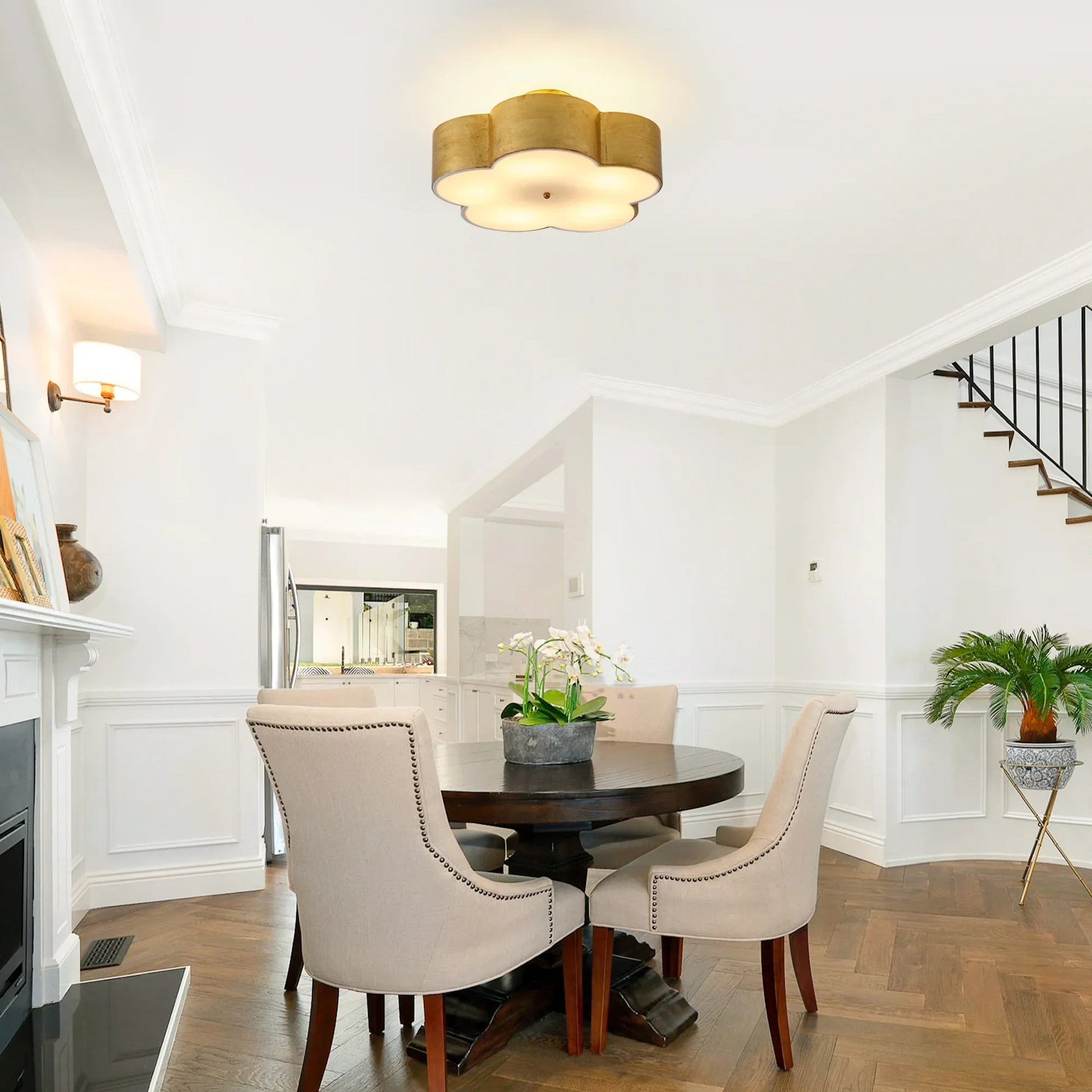 This modern golden flower ceiling light elegantly combines style and function.