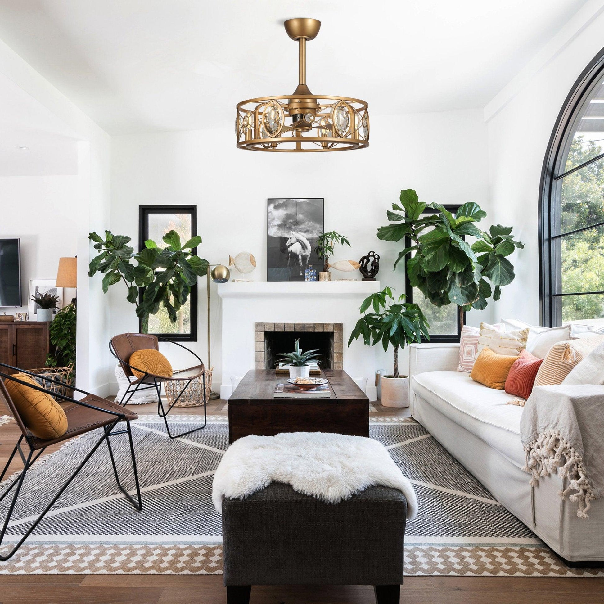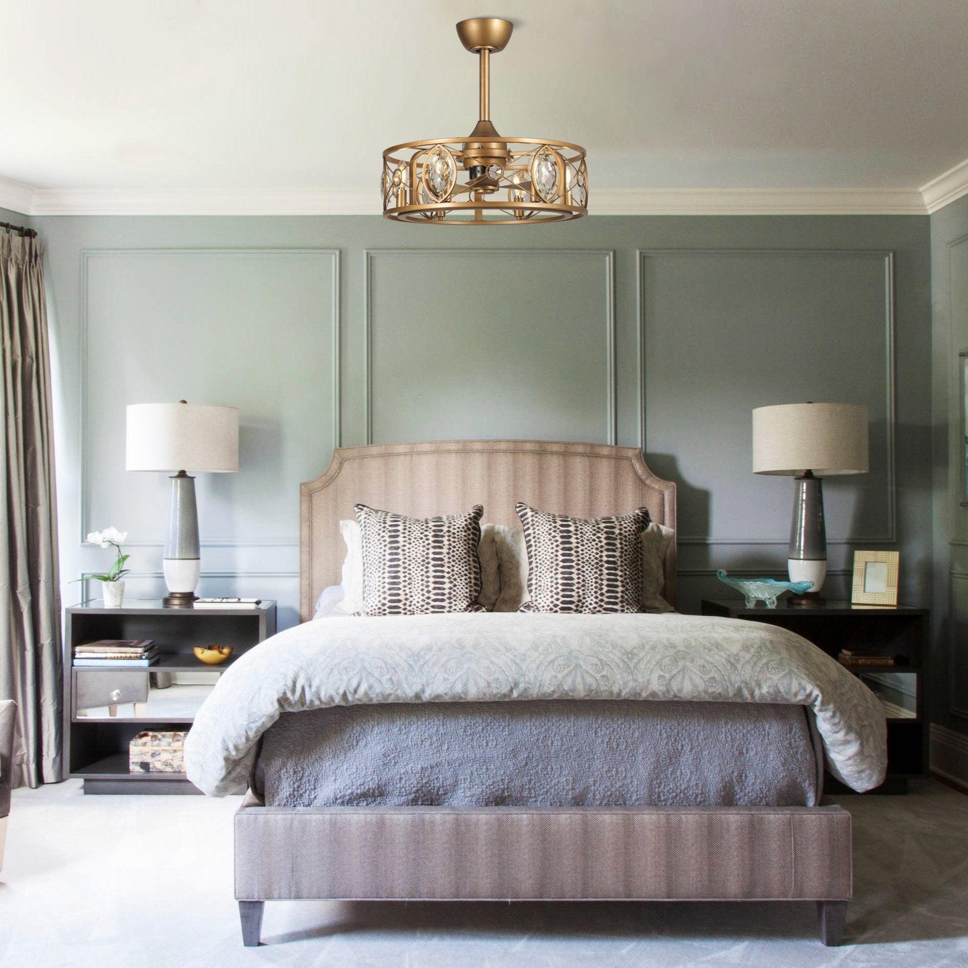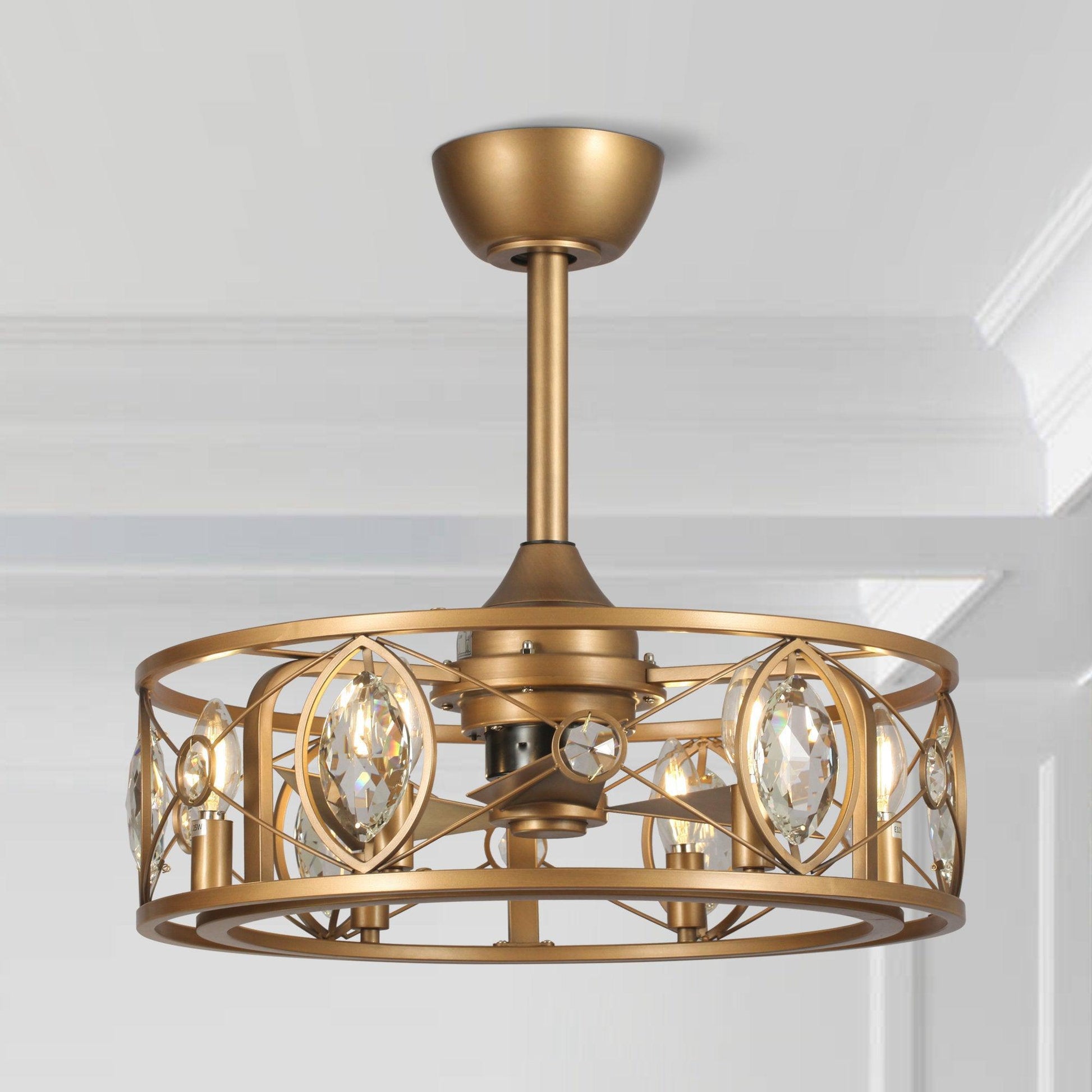 22" Kashmir Modern Glod Reversible Crystal Fandelier Ceiling Fan with Lighting and Remote Control
