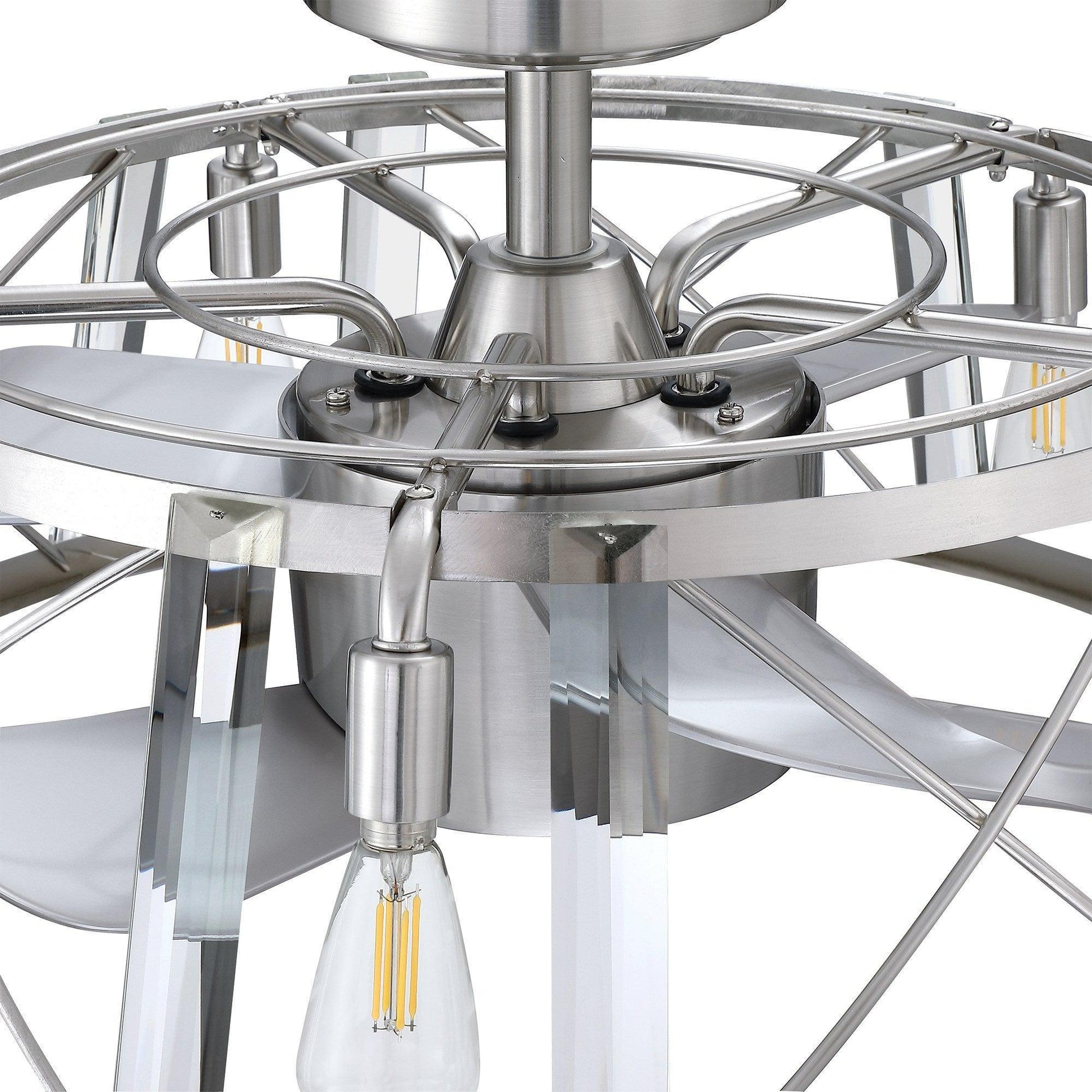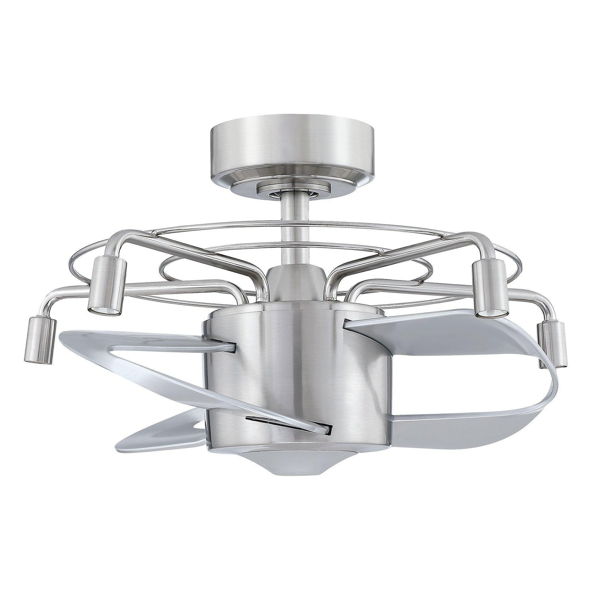 23" Modern Satin Nickel DC Motor Downrod Mount Reversible Fandelier Ceiling Fan with Lighting and Remote Control