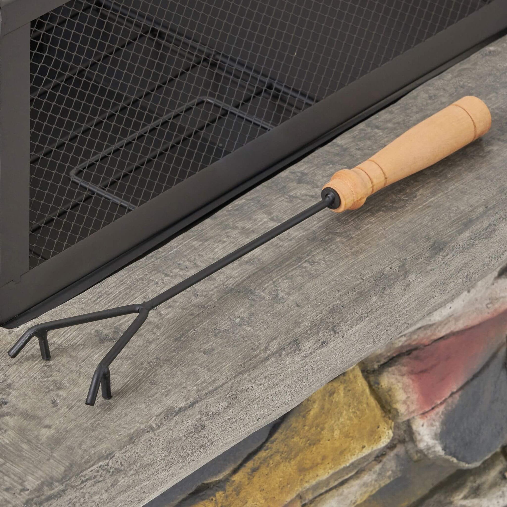 - Includes all you need for safe and easy operation, like a poker tool and a sturdy mesh cover to contain sparks.