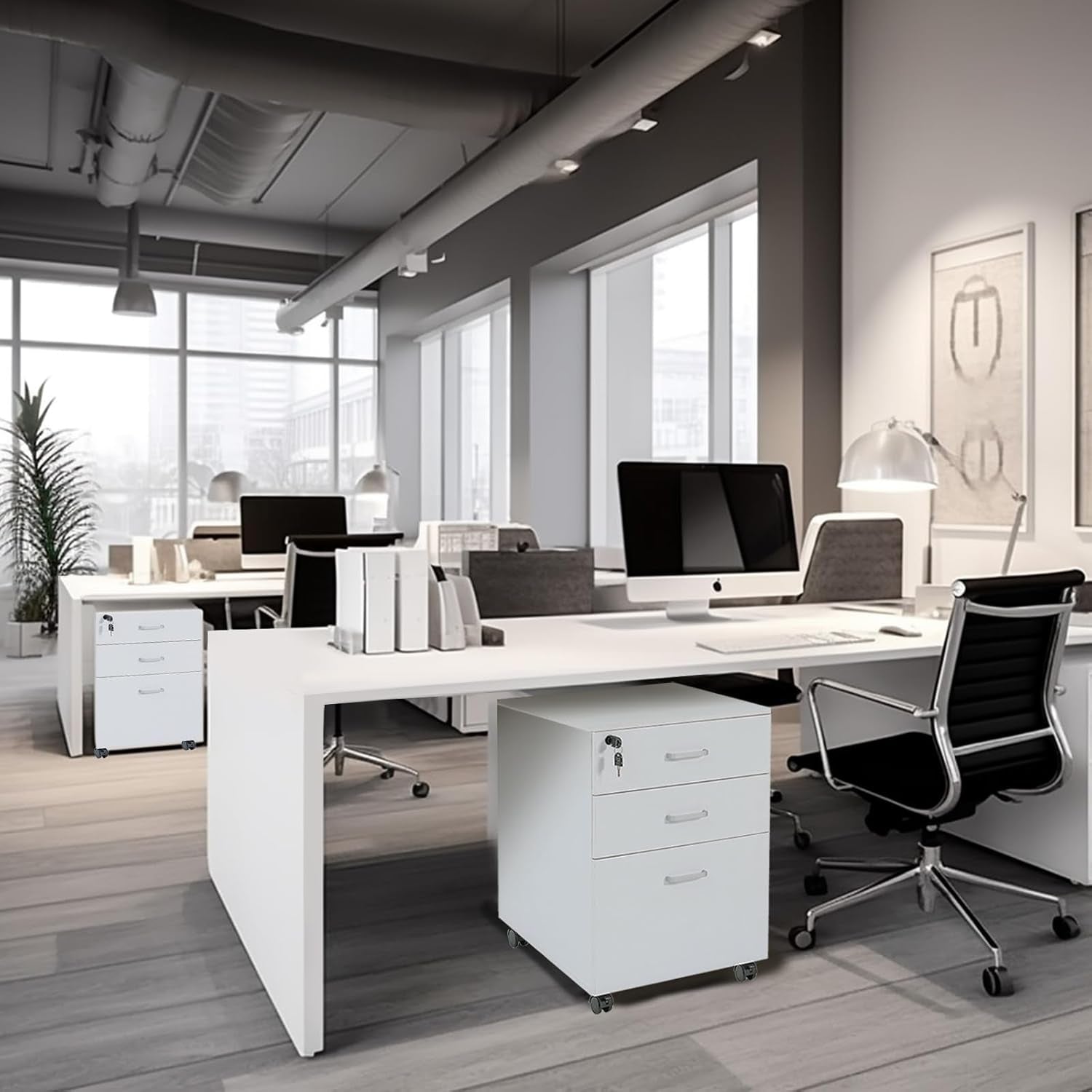 - Smooth mobility with brakes: Four 360° casters for easy maneuverability; front two brakes keep the cabinet steady when needed.