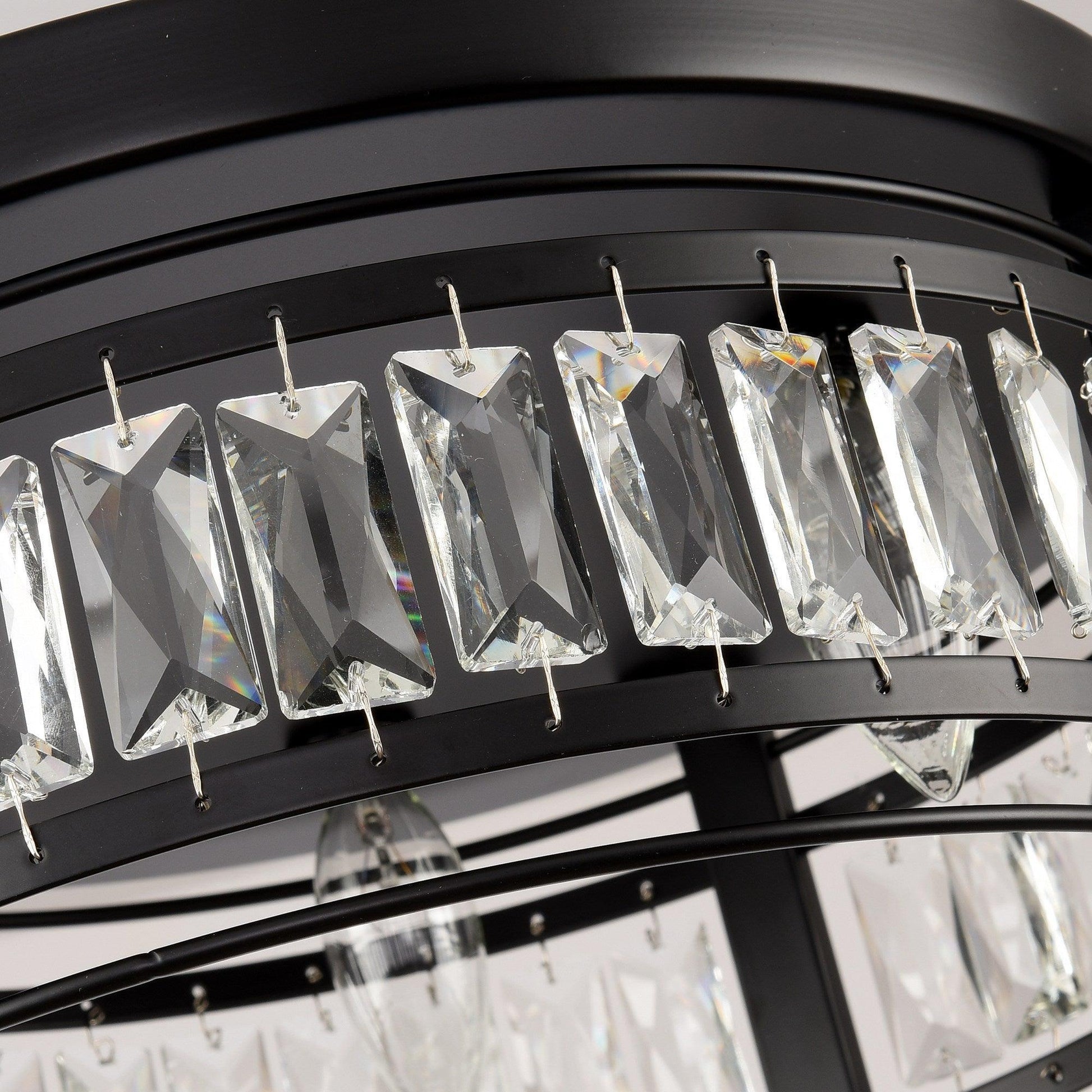 Sophisticated and modern, this crystal flush mount ceiling light is wrapped in a drum shade with glittering rectangular, faceted crystals for an elegant finish in your home. The metal frame is augmented with a matte black finish for the timeless character. This modern three-light crystal ceiling light sparkles in your entryway, bedroom, dining room, or any room in your house.