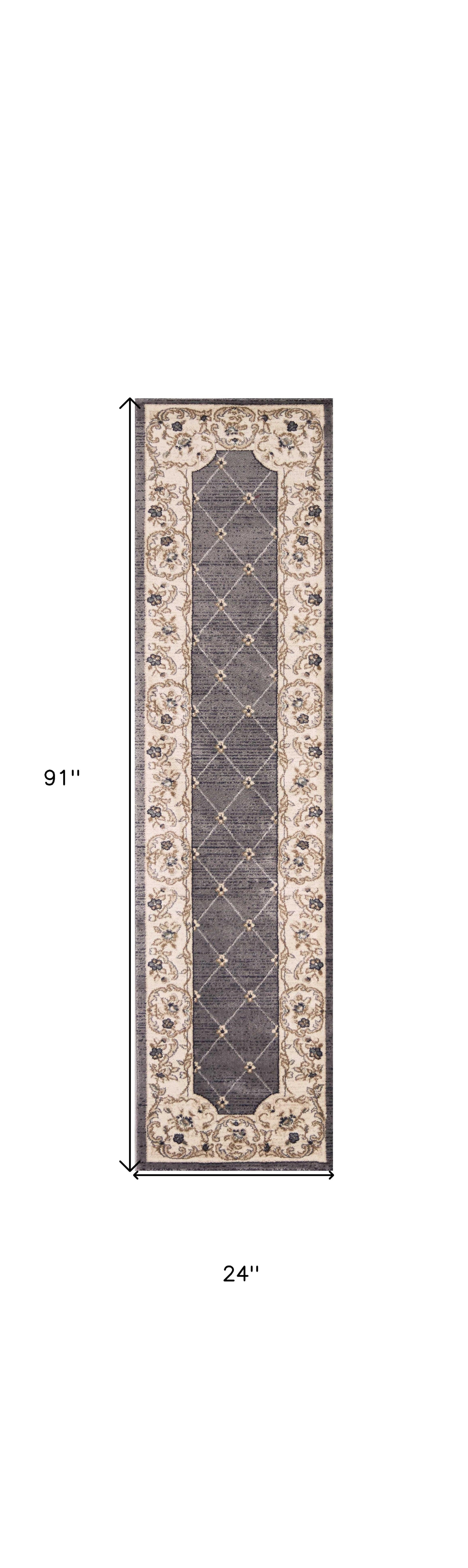 3' X 5' Gray and Ivory Trellis Area Rug