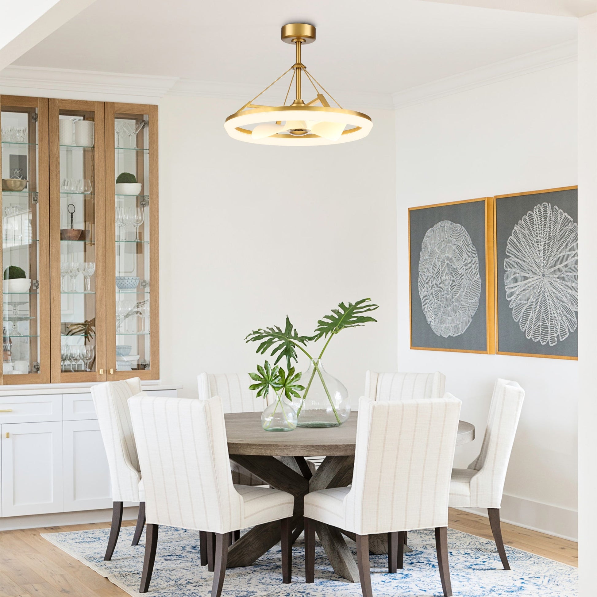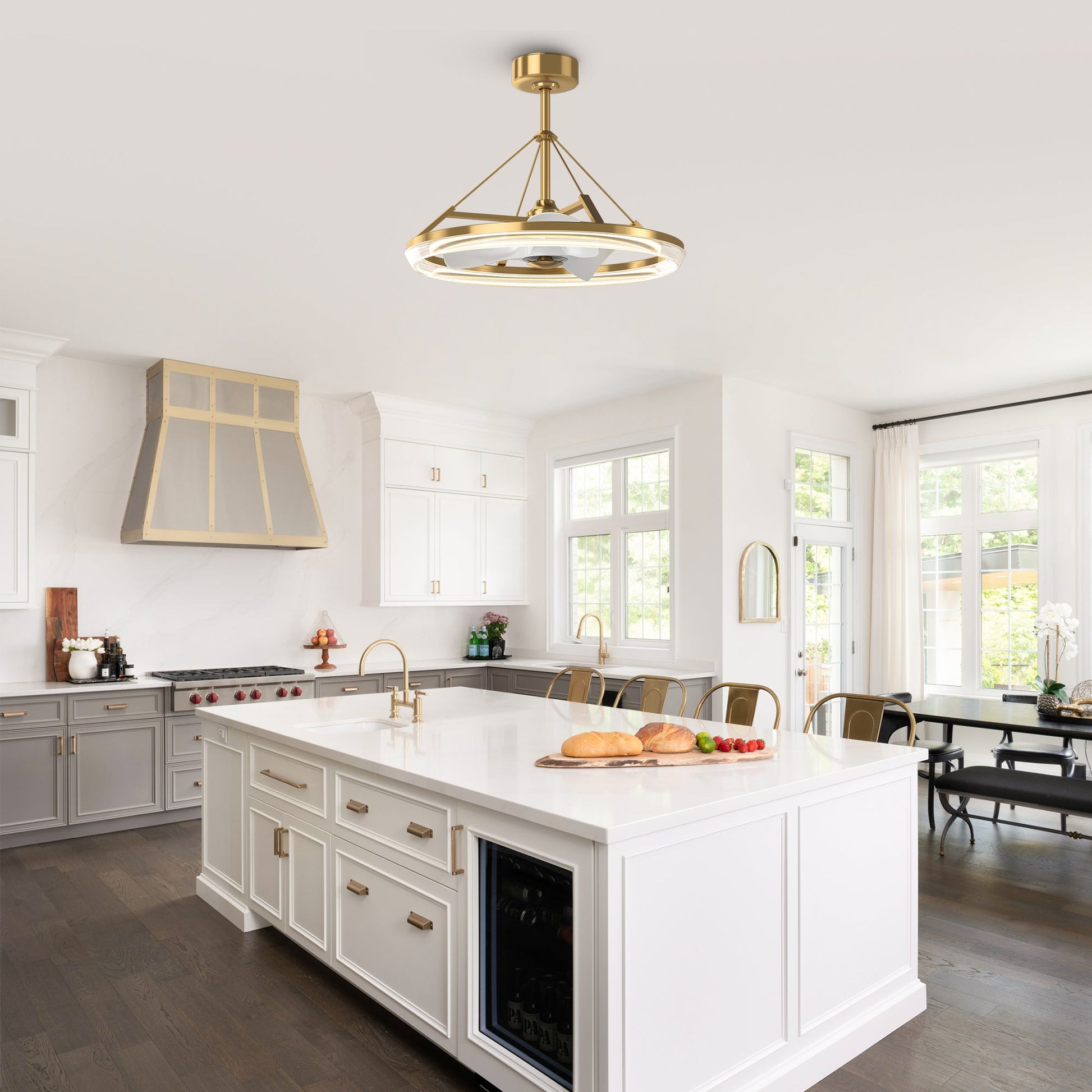Experience elegant cooling and modern illumination with the Mona Golden ceiling fan.