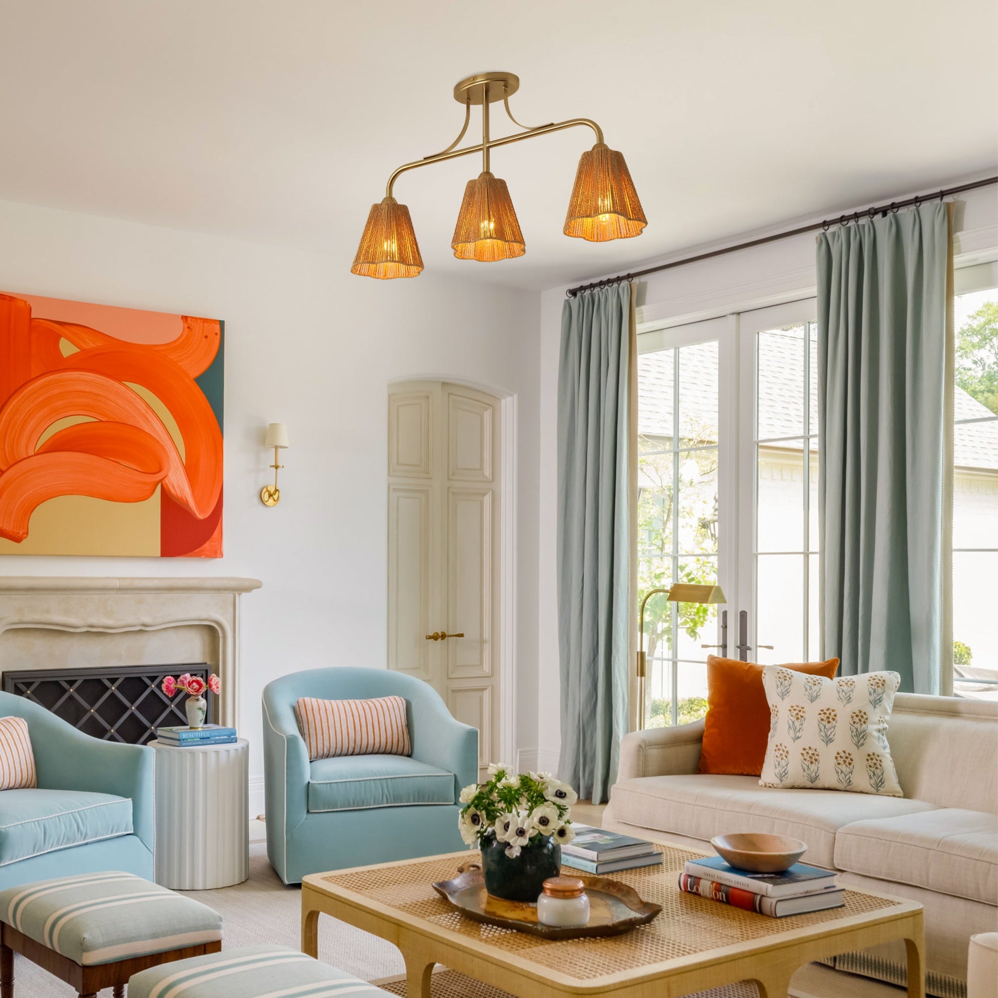 【Natural Material Design】: Shades crafted from durable hemp paper rope, complementing the golden iron body for an authentic farmhouse look.