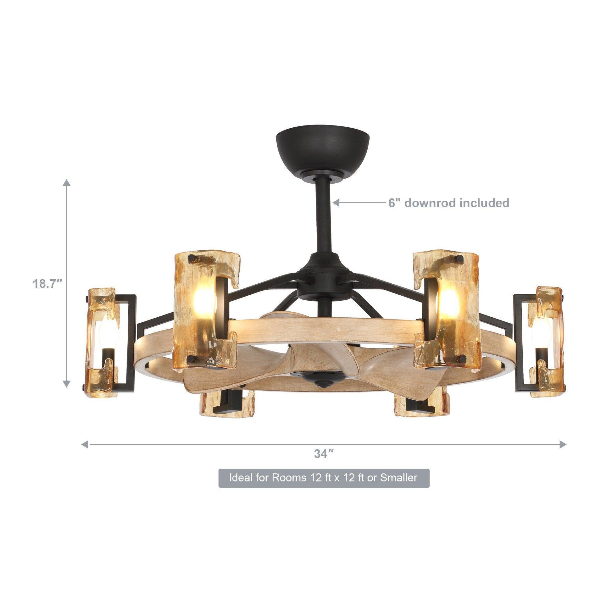 | 34” | Metal, Glass | D1"-L8"&L20" | 3*ABS Blades | 6*E12 Lamp holders no bulbs | DC motor | Remote control | 6 | Dry location |
